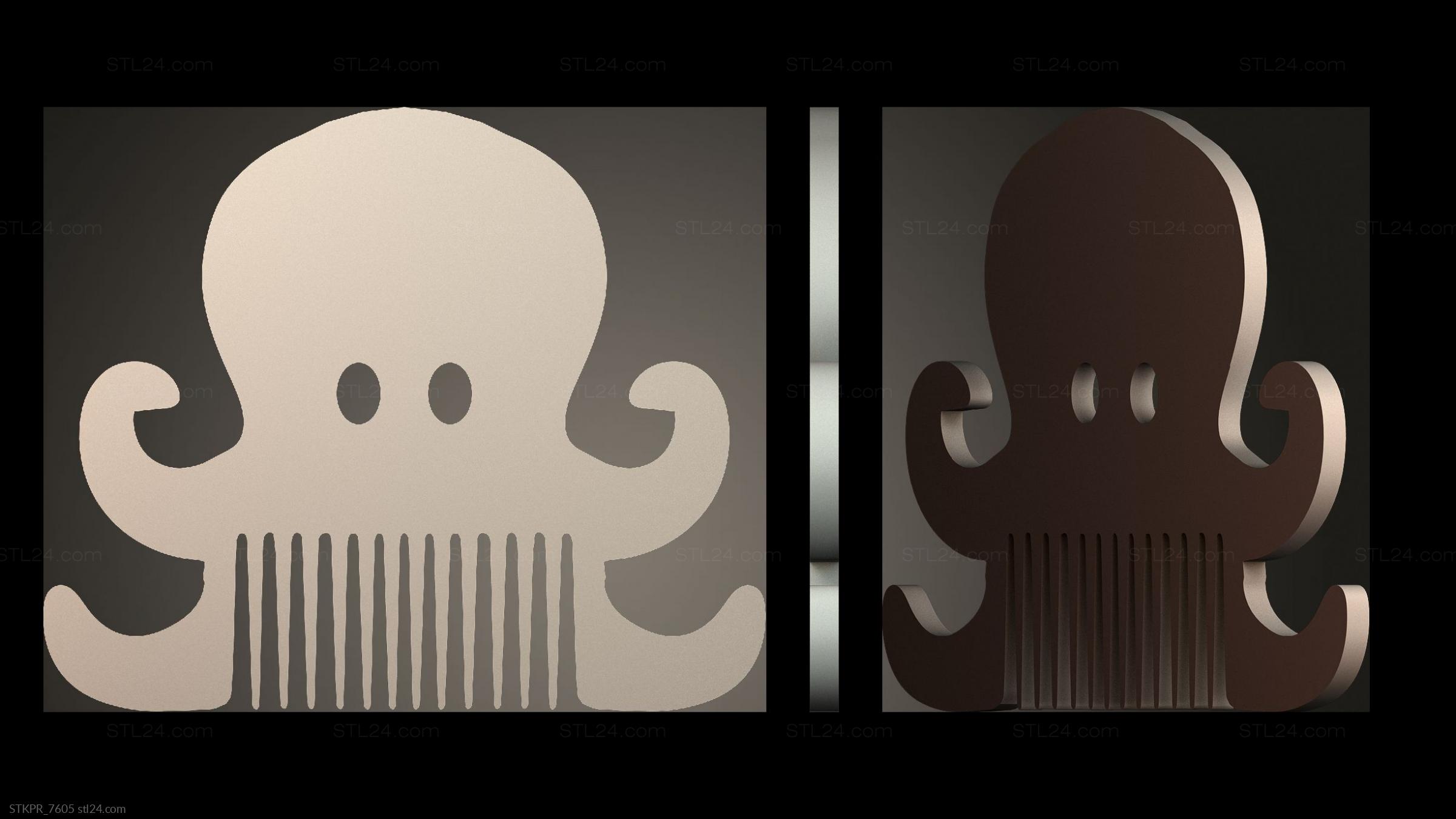 3D STL MODEL FOR CNC Figurines simple Octopusthemed Hair Comb