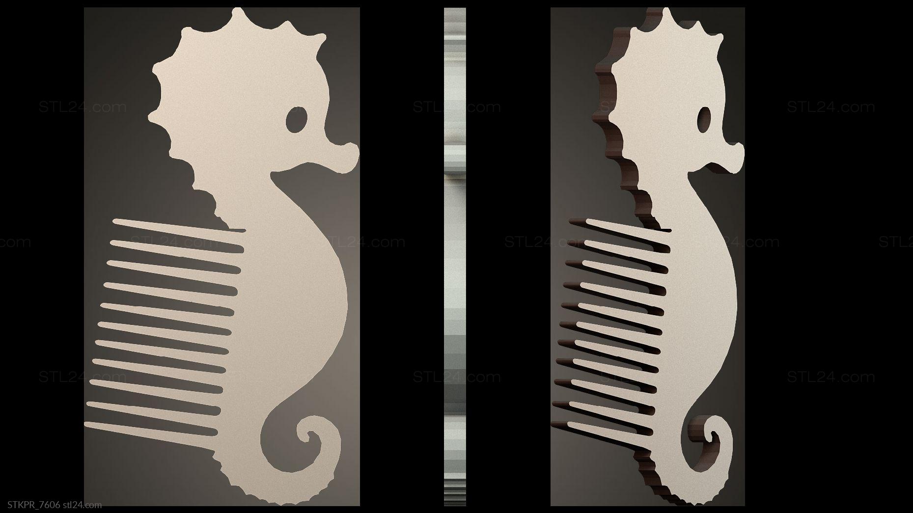 3D STL MODEL FOR CNC Figurines simple Seahorse Comb Design