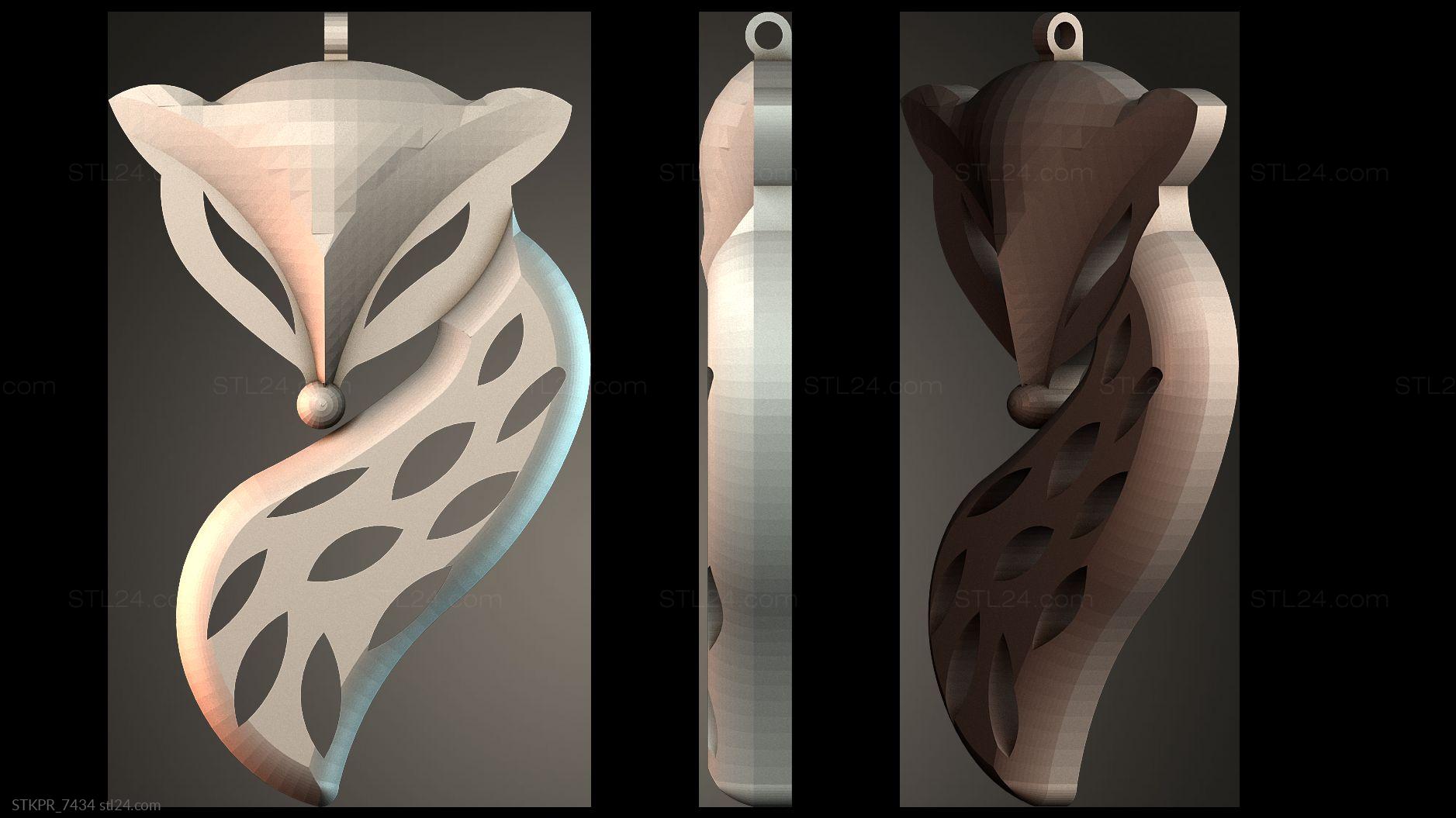 3D STL MODEL FOR CNC Figurines simple Stylized Fox Pendant