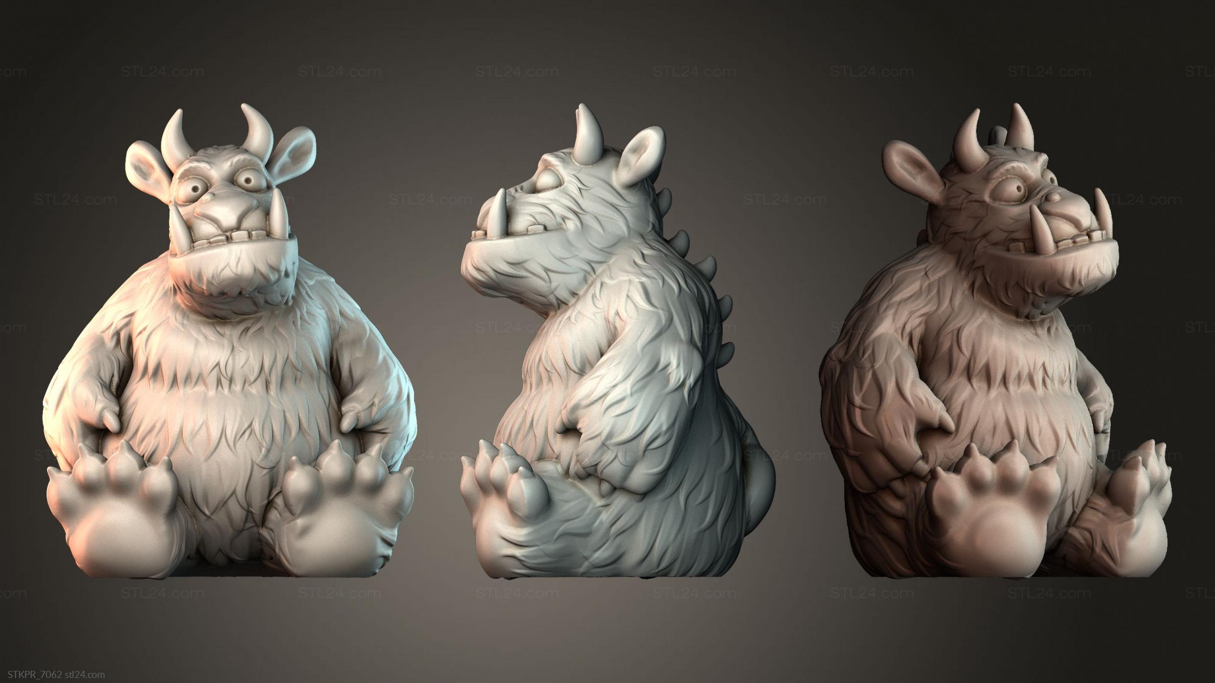 3D STL MODEL FOR CNC Figurines simple Fluffy Monster Figure