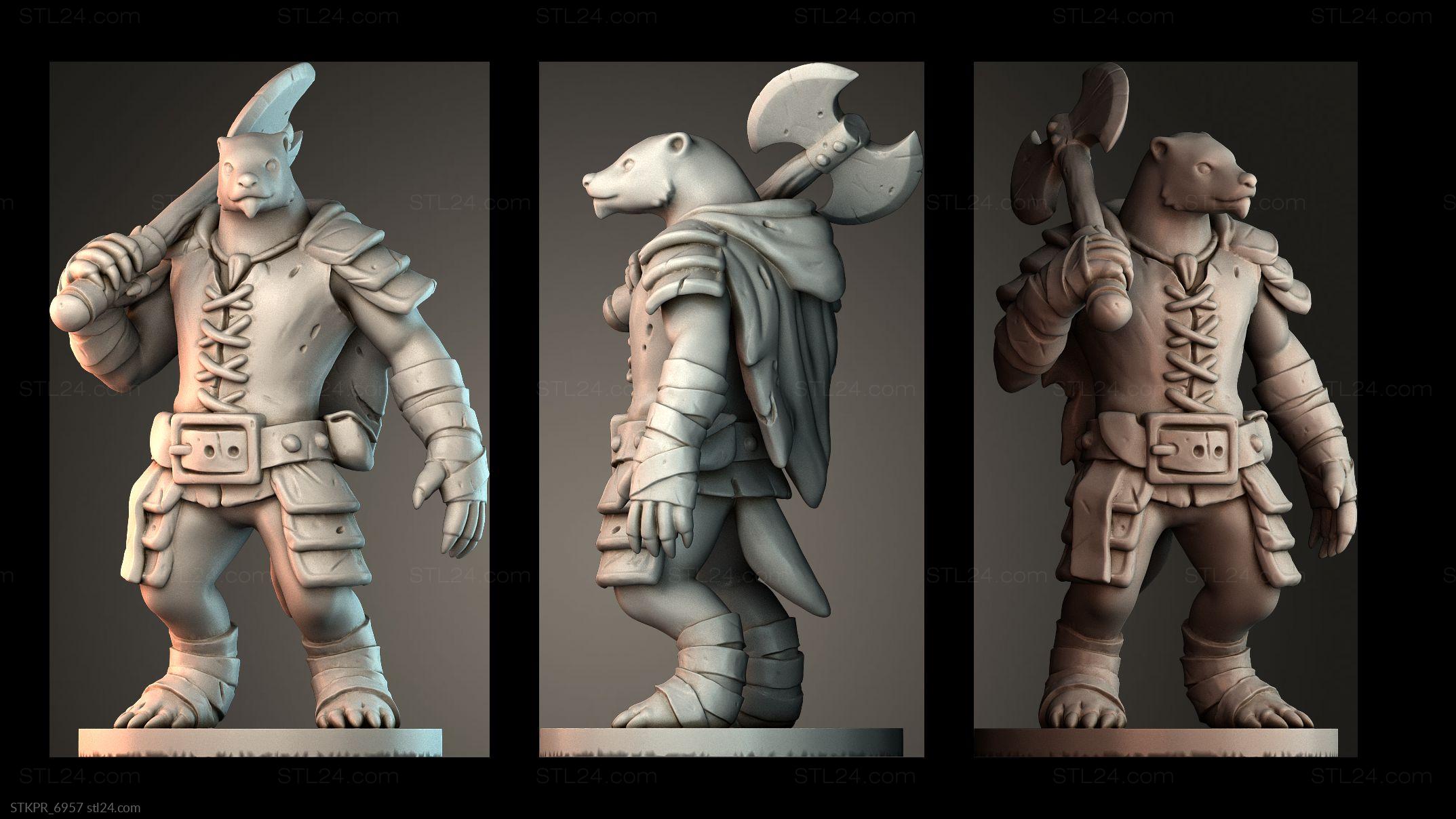 3D STL MODEL FOR CNC Figurines simple Badger warrior