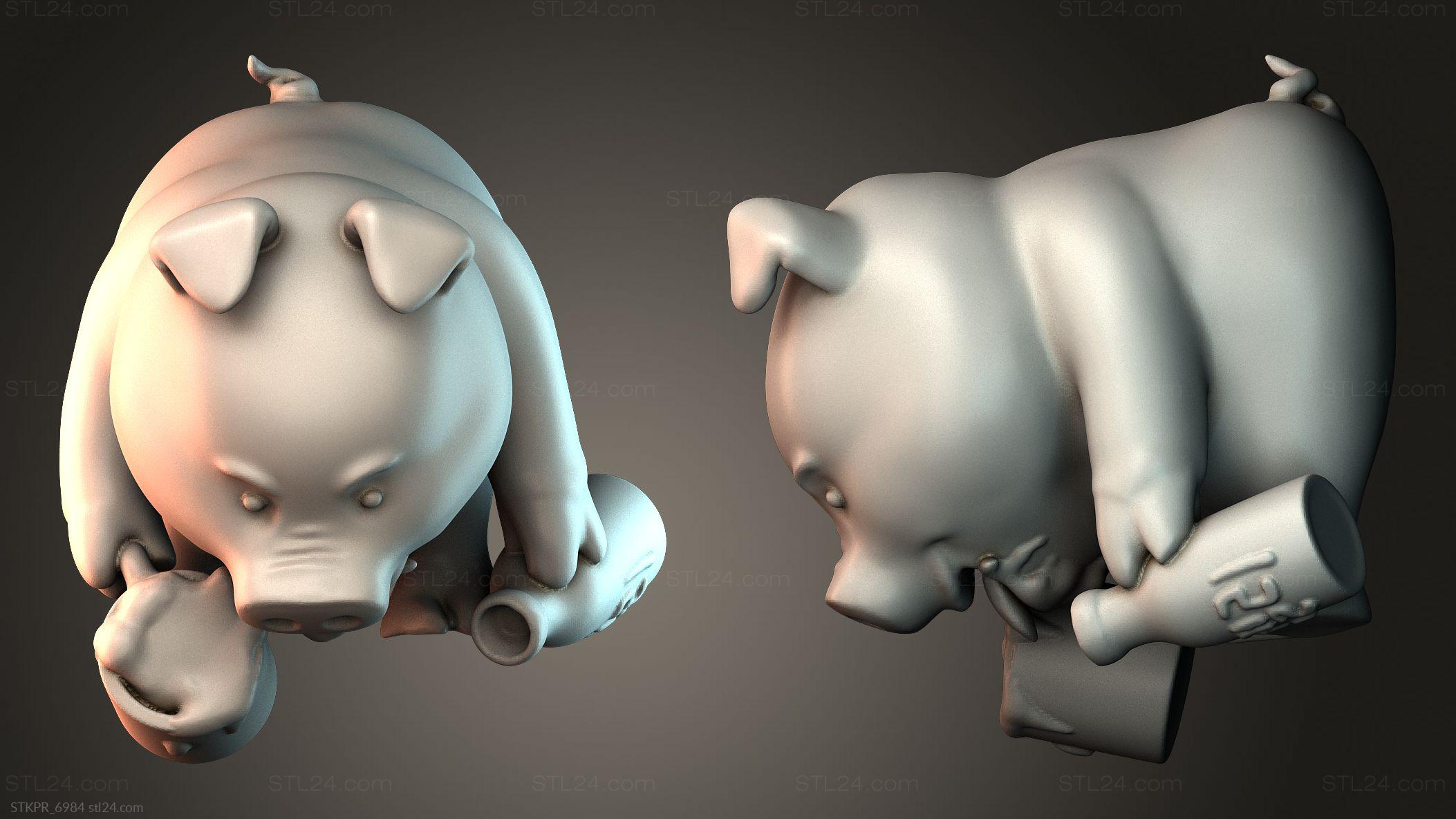 3D STL MODEL FOR CNC Figurines simple Pig with beer