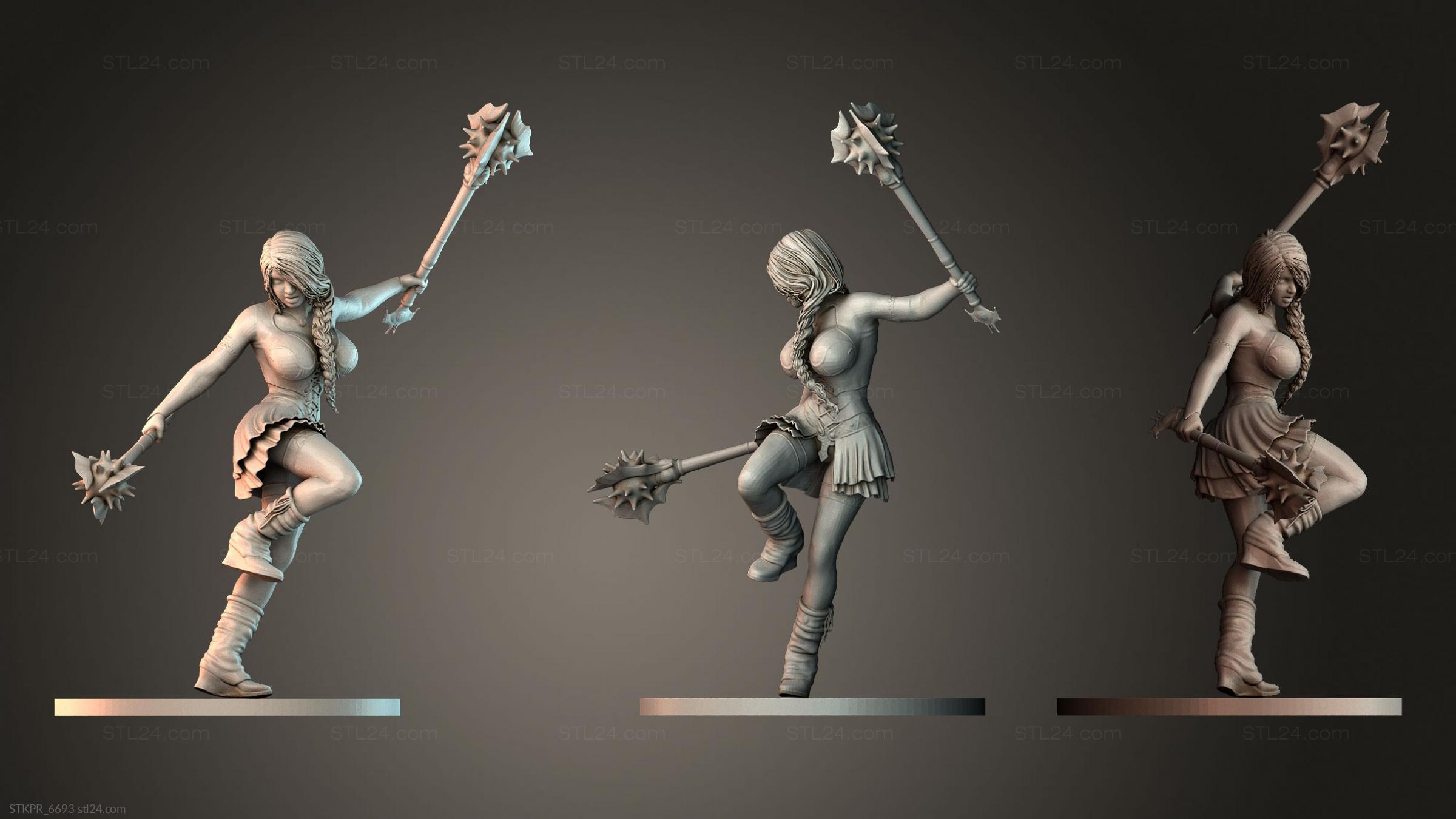 3D STL MODEL FOR CNC Figurines simple Female Mace Guardian Women