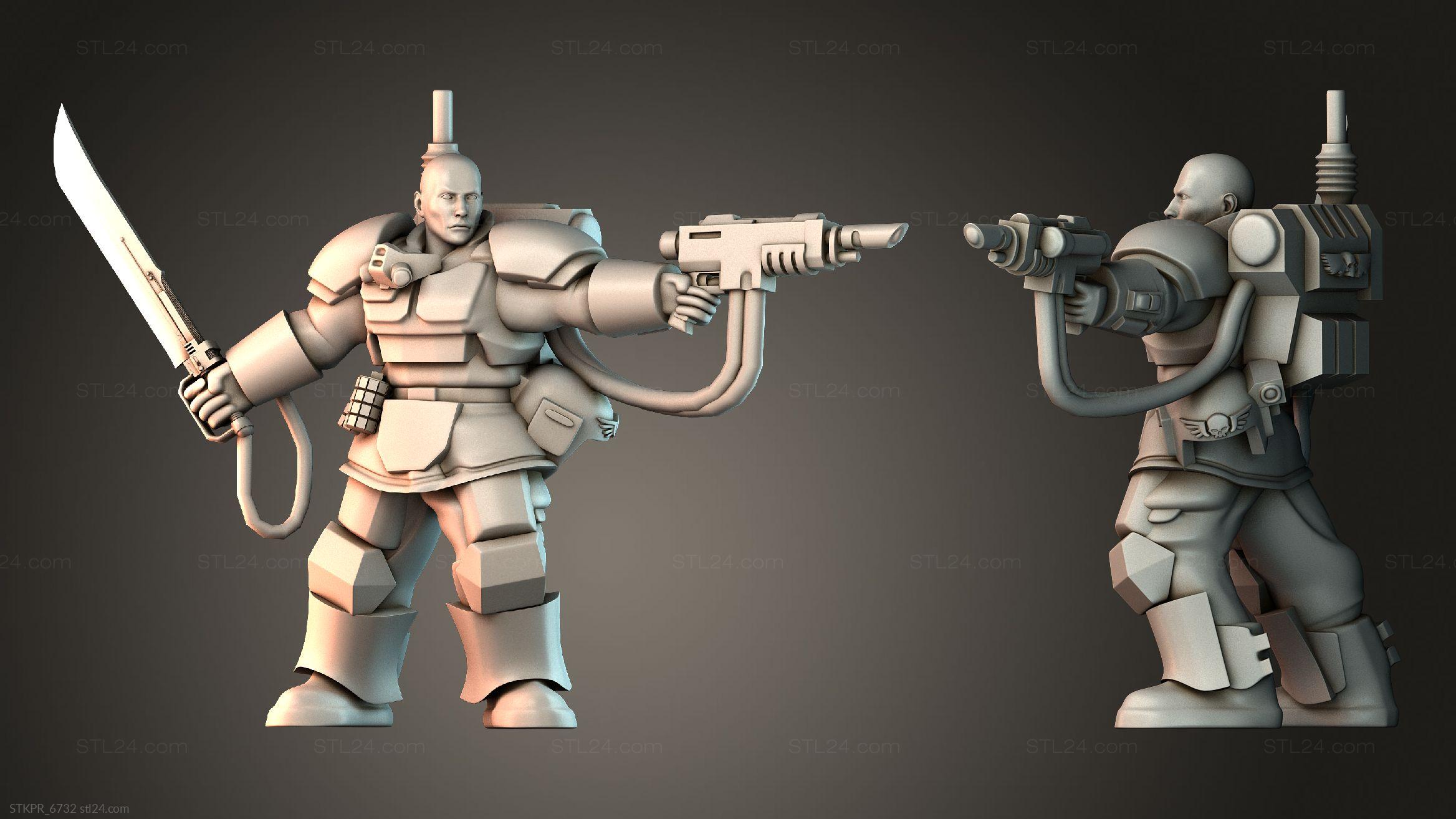 3D STL MODEL FOR CNC Figurines simple Kasrkin with blade