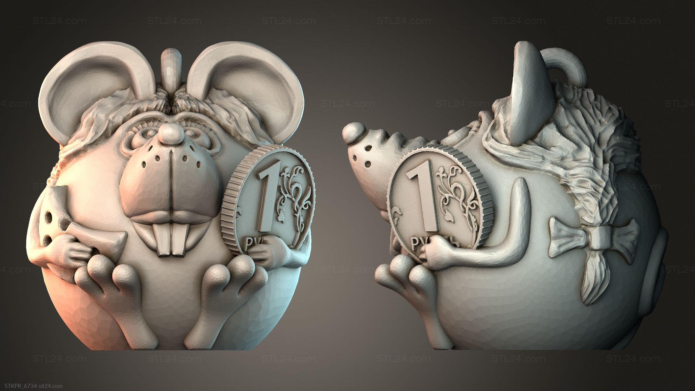 3D STL MODEL FOR CNC Figurines simple mouse with coin