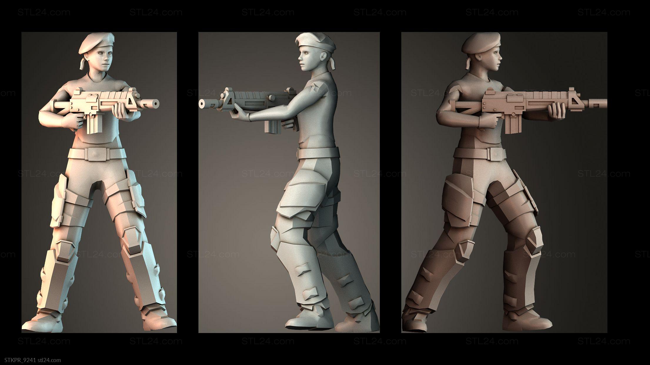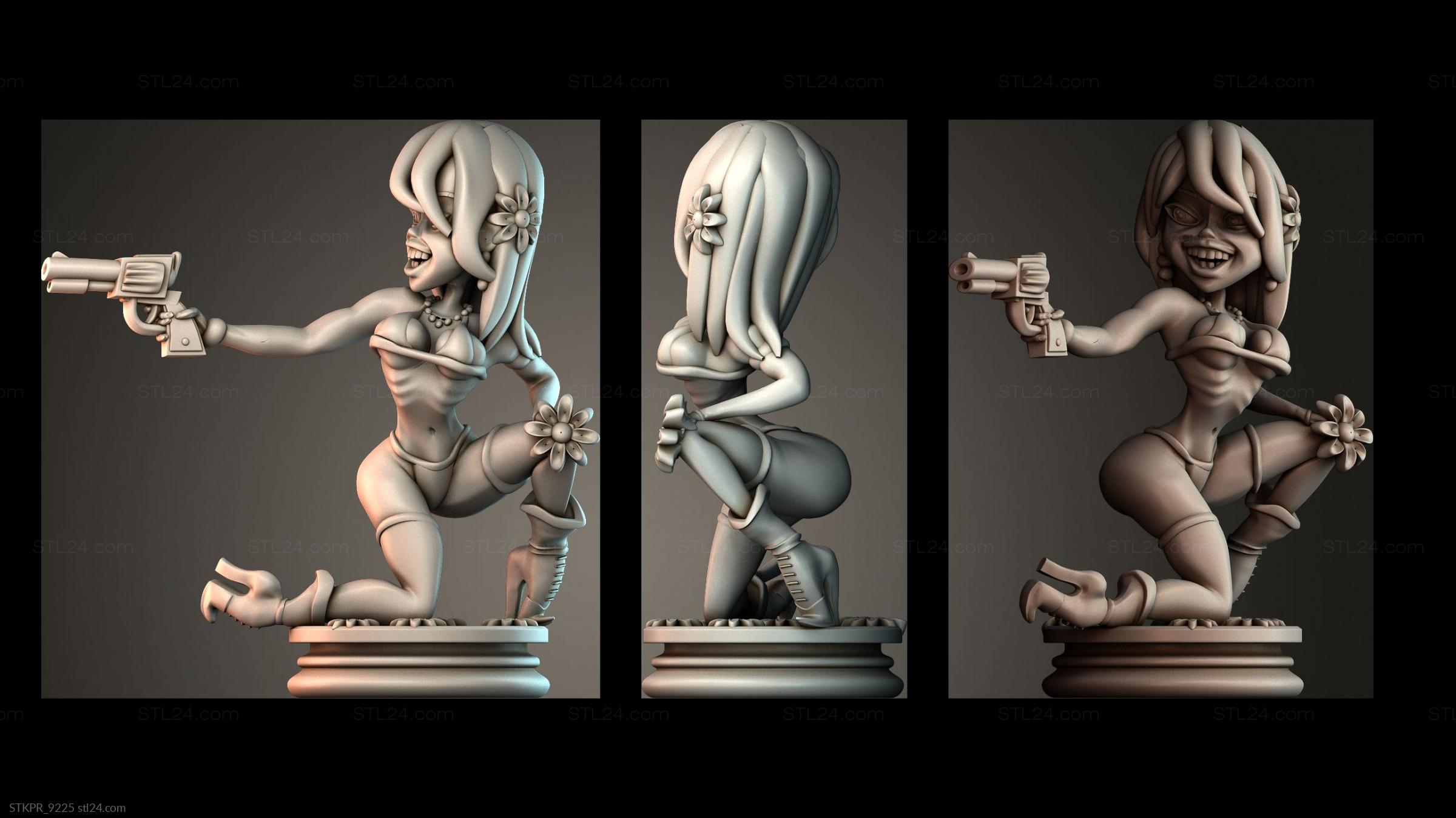 3D STL MODEL FOR CNC Figurines simple Girl shooting pistol