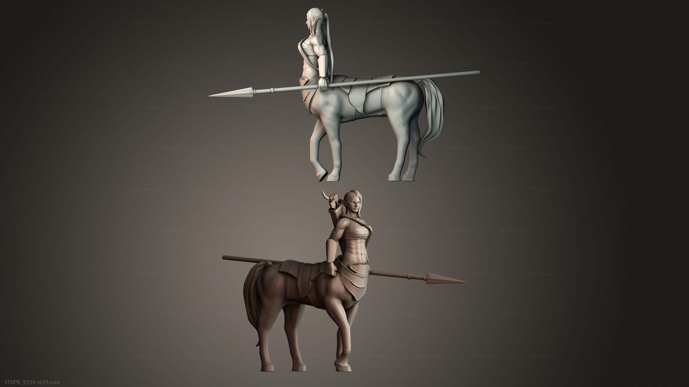 3D STL MODEL FOR CNC Figurines simple Centaur Female Lancer