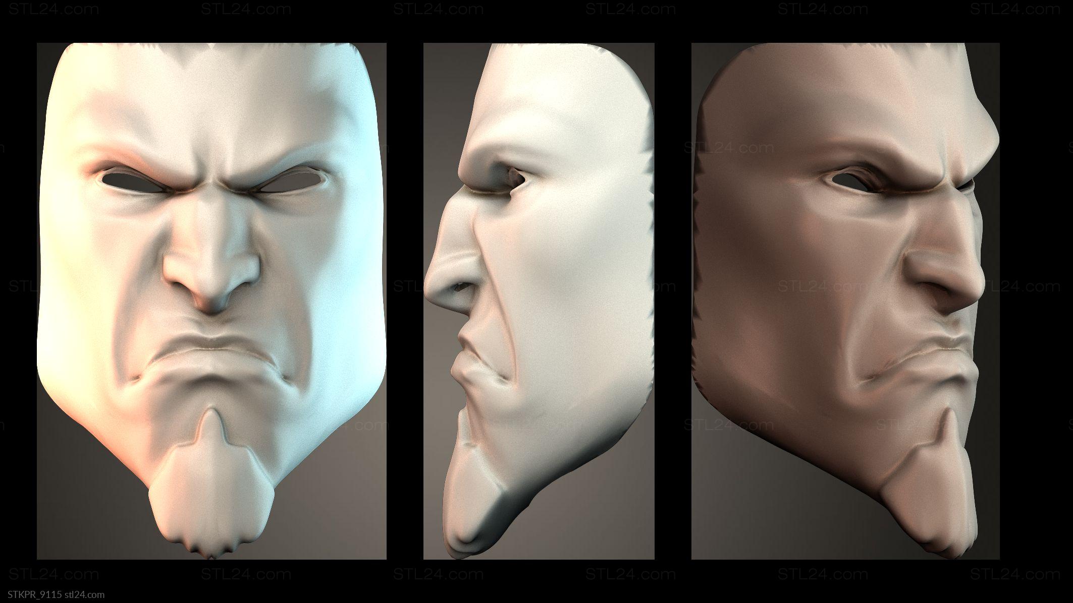3D STL MODEL FOR CNC Figurines simple Angry Mask Design