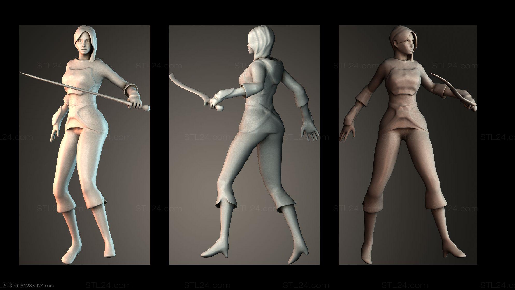 3D STL MODEL FOR CNC Figurines simple Attacking girl