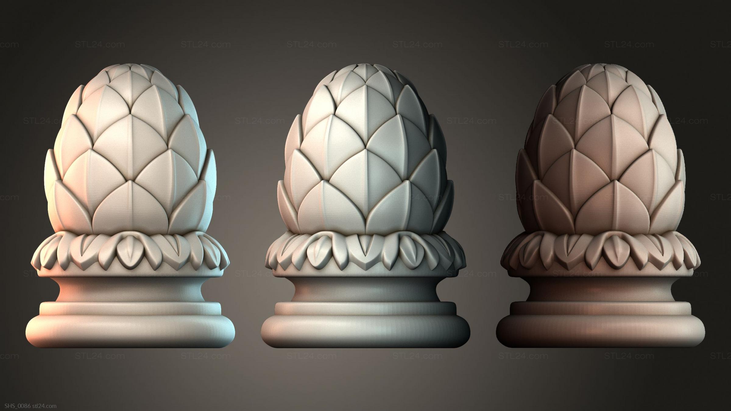 3D STL MODEL FOR CNC Finial 3d stl model of round decor, cones/pommels for a post