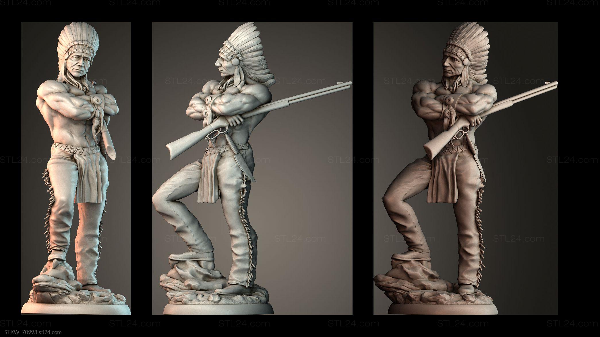3D STL MODEL FOR CNC Military figurines Elite Native American Chief