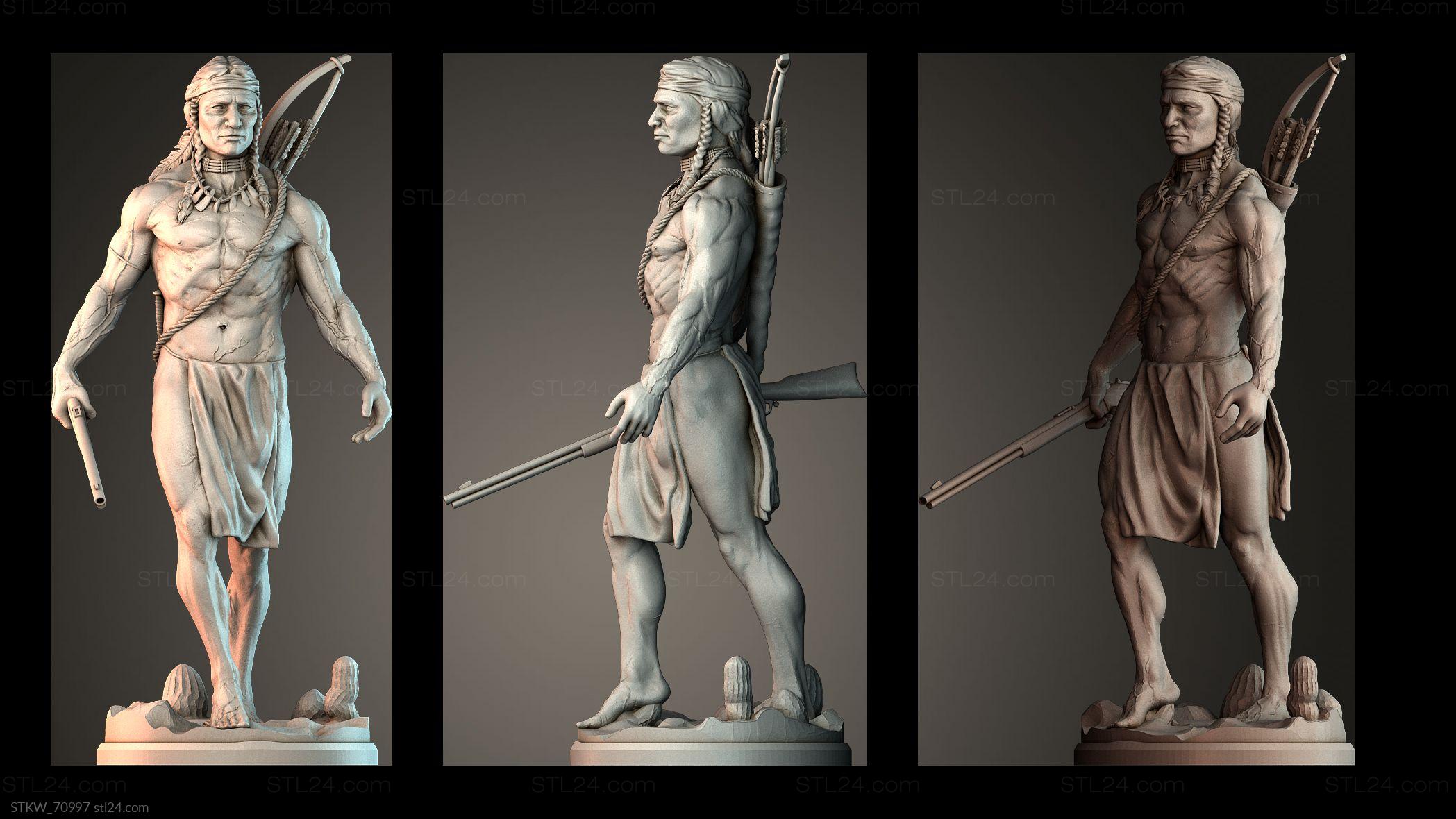 3D STL MODEL FOR CNC Military figurines Native American War Hunter