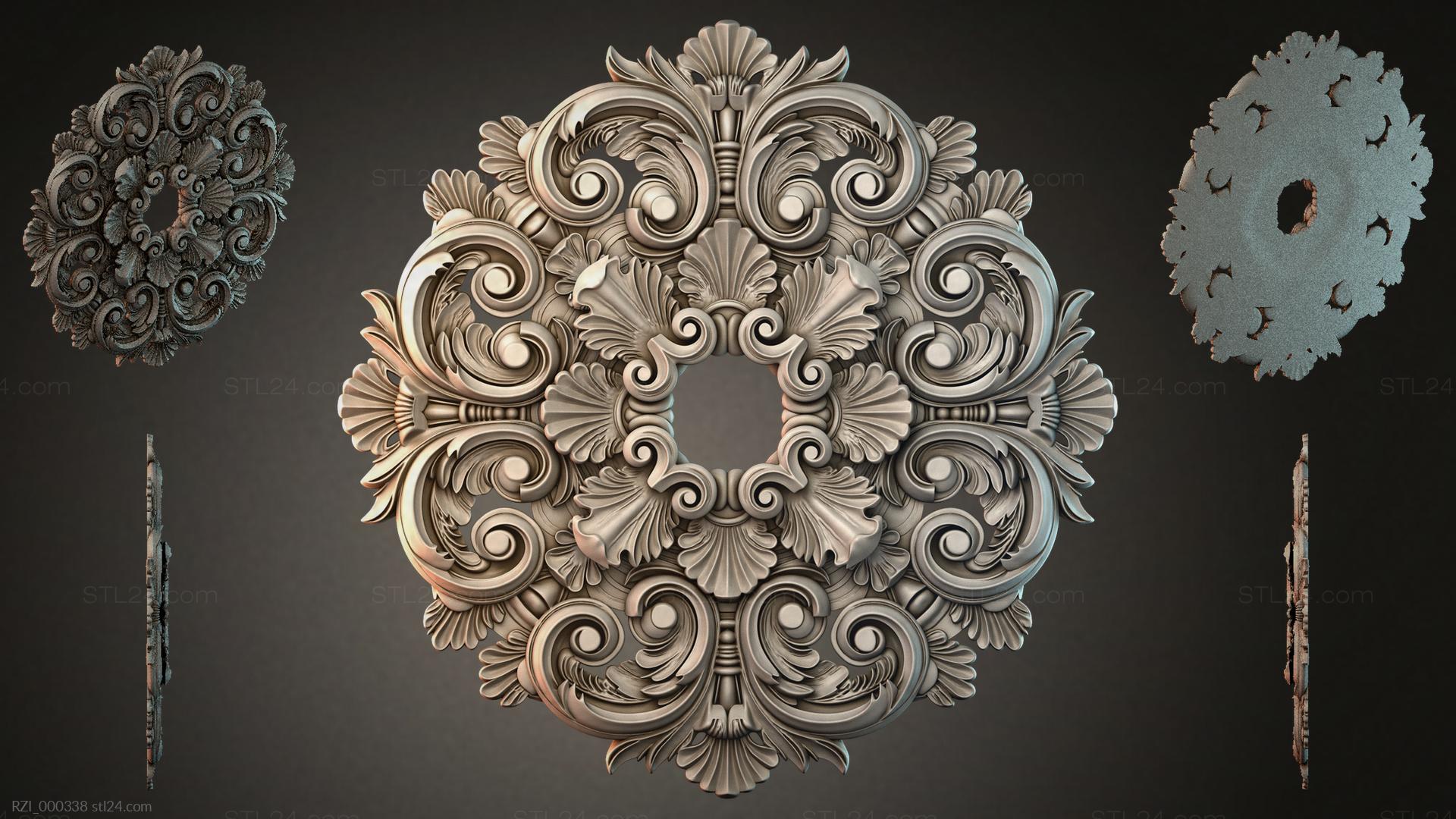 3D STL model for CNC and 3D printers - Round decor, rosettes RZI 000338