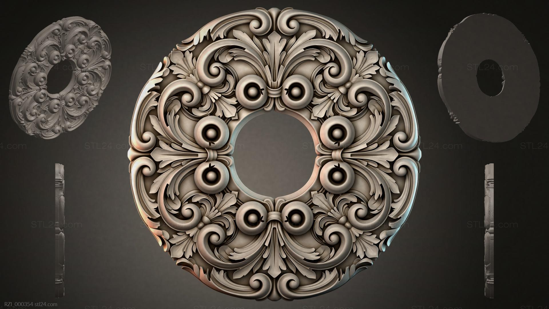 3D STL model for CNC and 3D printers - Round decor, rosettes RZI 000354