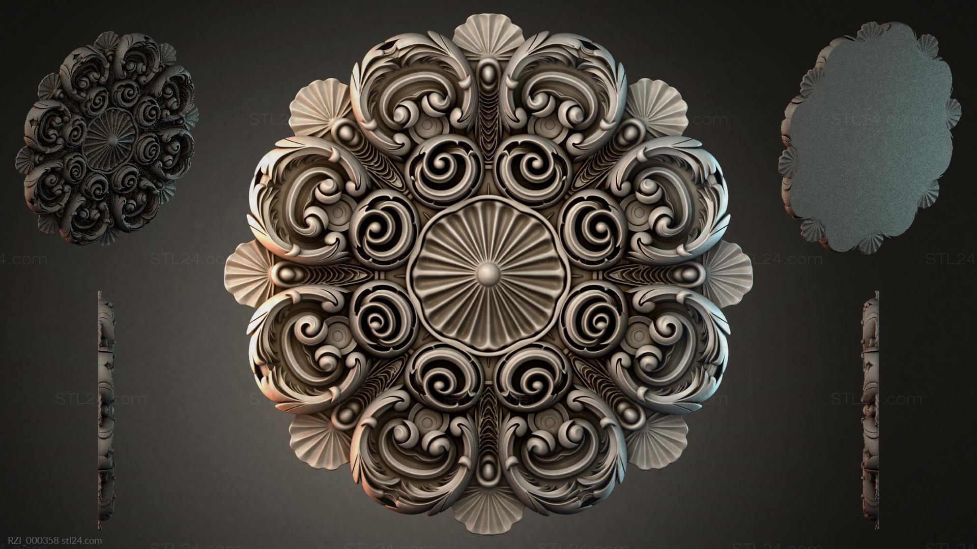 3D STL model for CNC and 3D printers - Round decor, rosettes RZI 000358