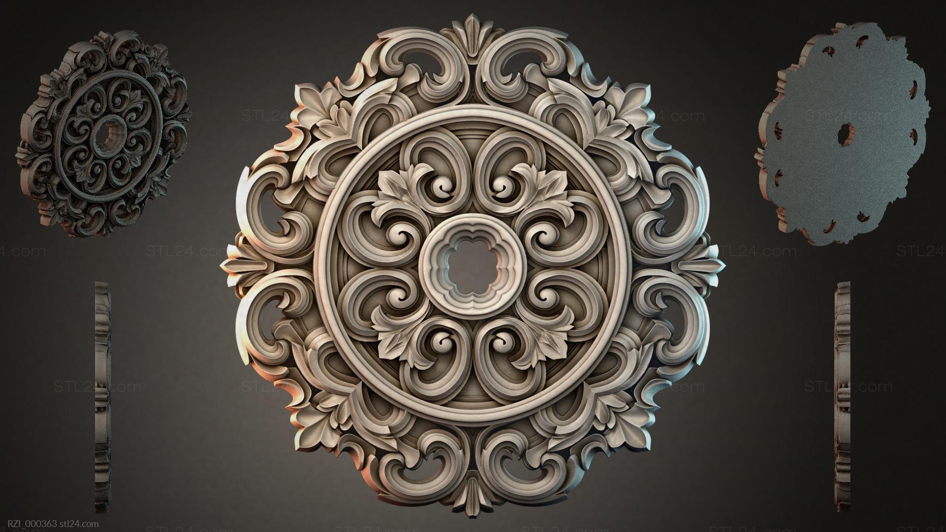 3D STL model for CNC and 3D printers - Round decor, rosettes RZI 000363