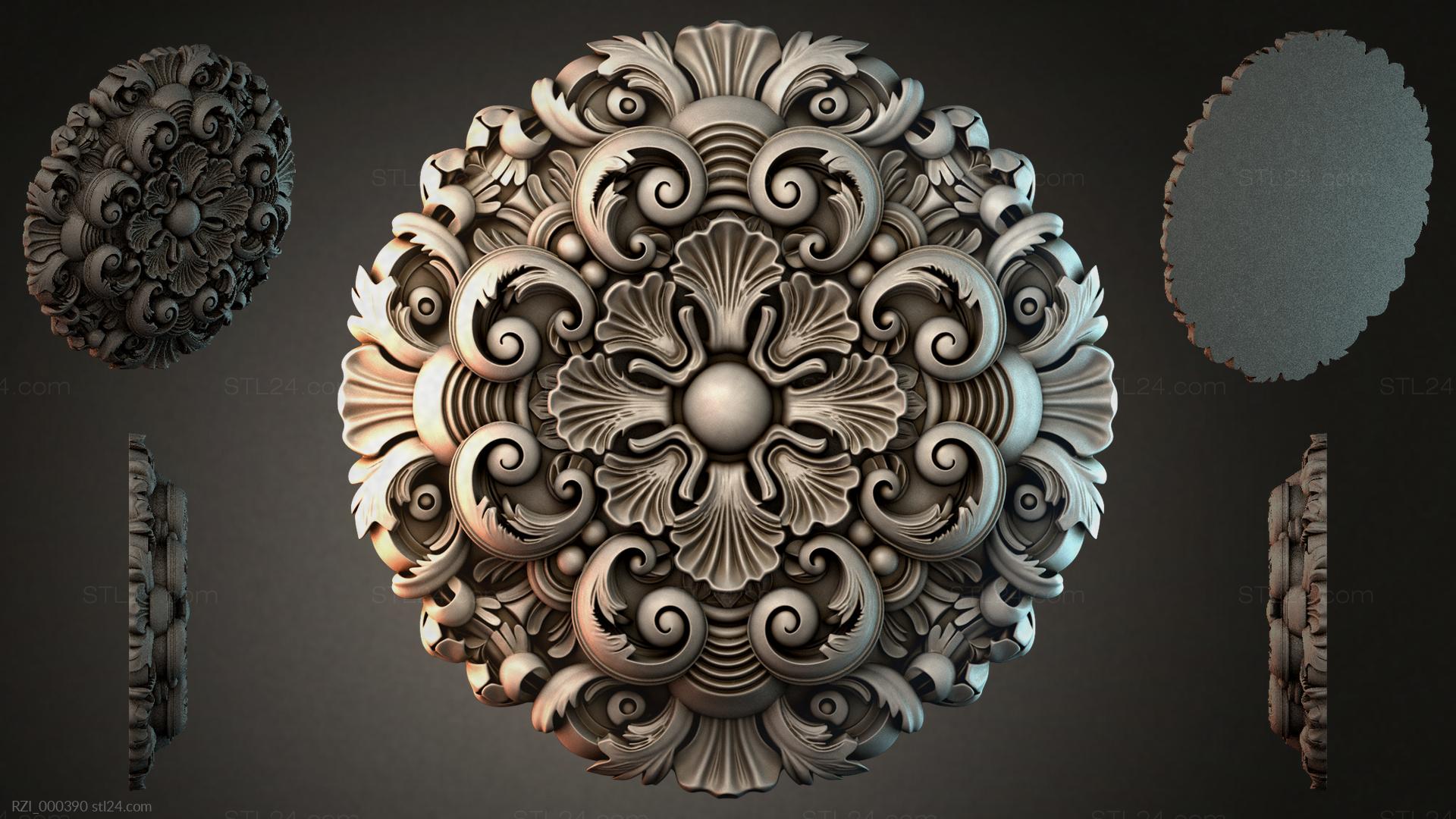 3D STL model for CNC and 3D printers - Round decor, rosettes RZI 000390