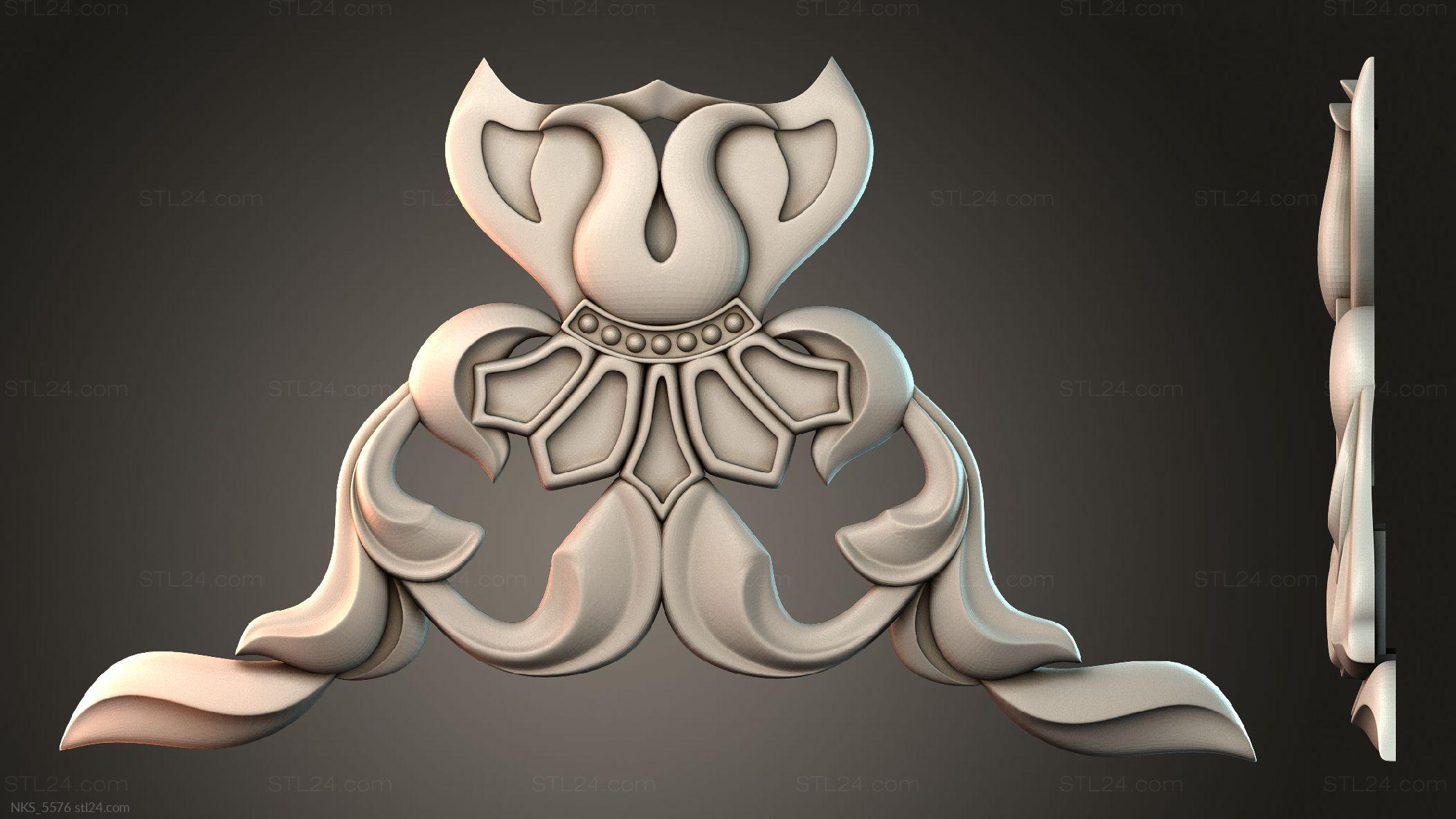 There’s also a section with asymmetrical onlays. Perhaps the decor you need is presented there. See the page. Another section contains 3D models of central onlays. Read about all sections in one article: overview of 3D models of carved onlay elements.