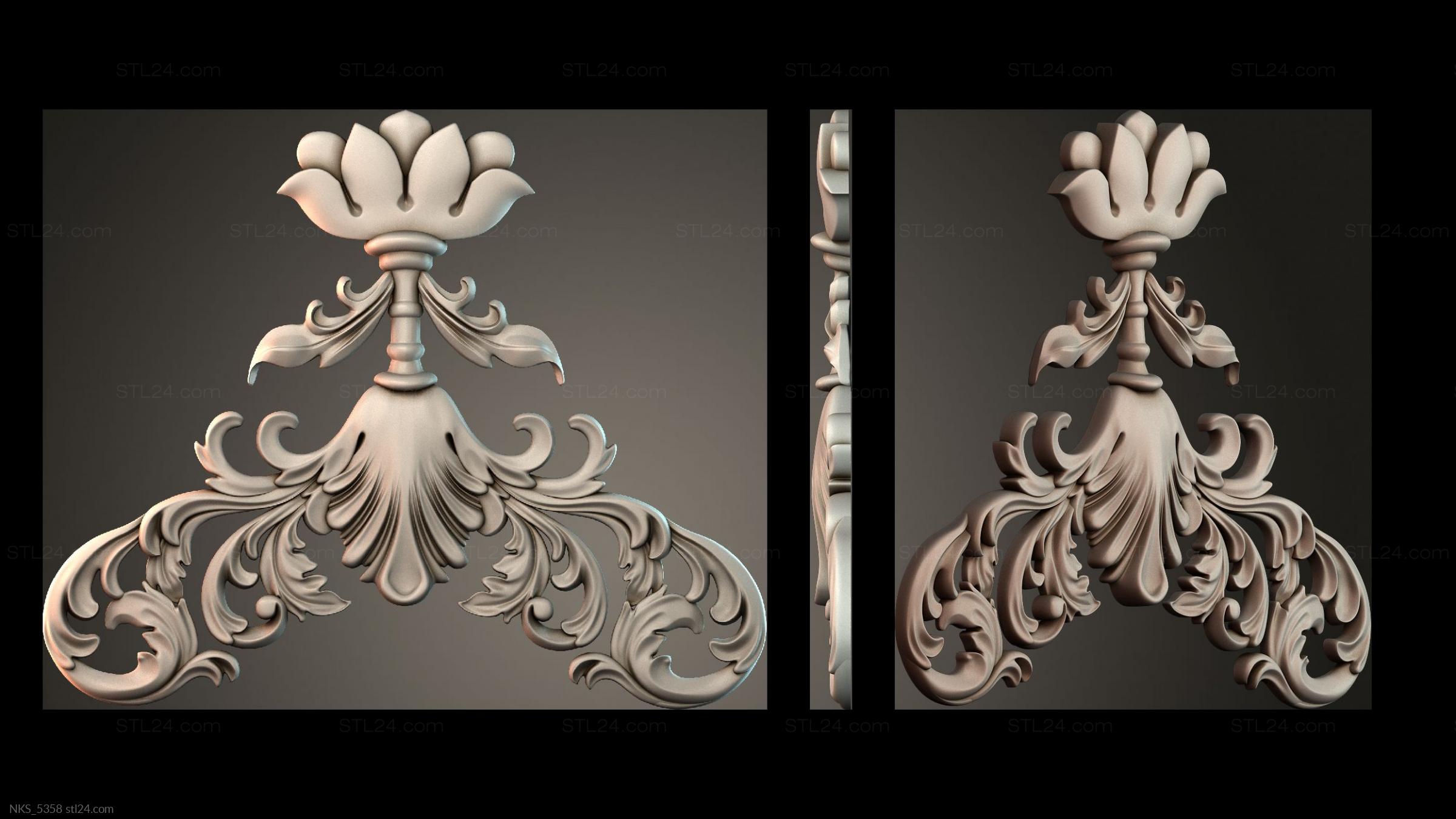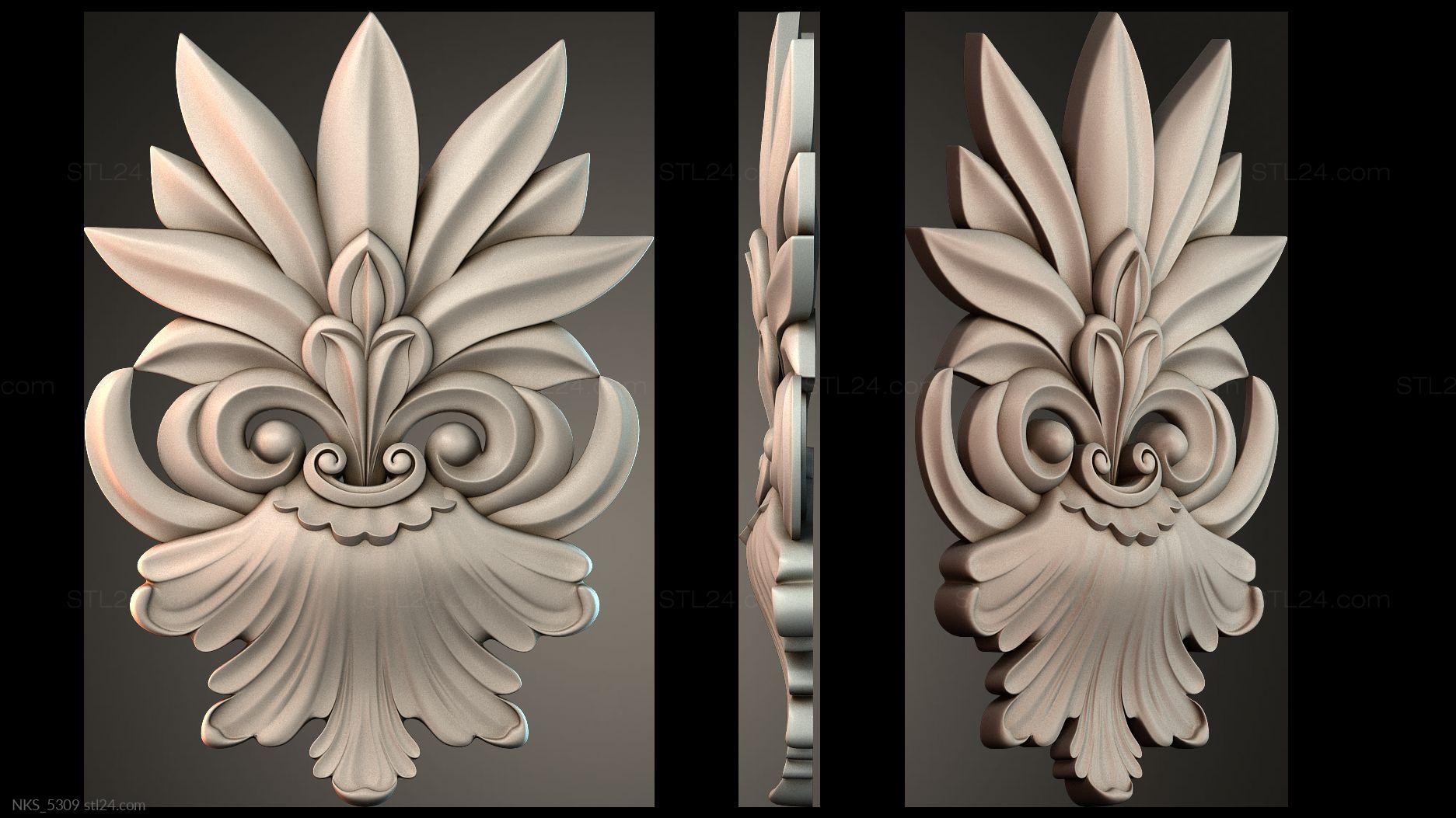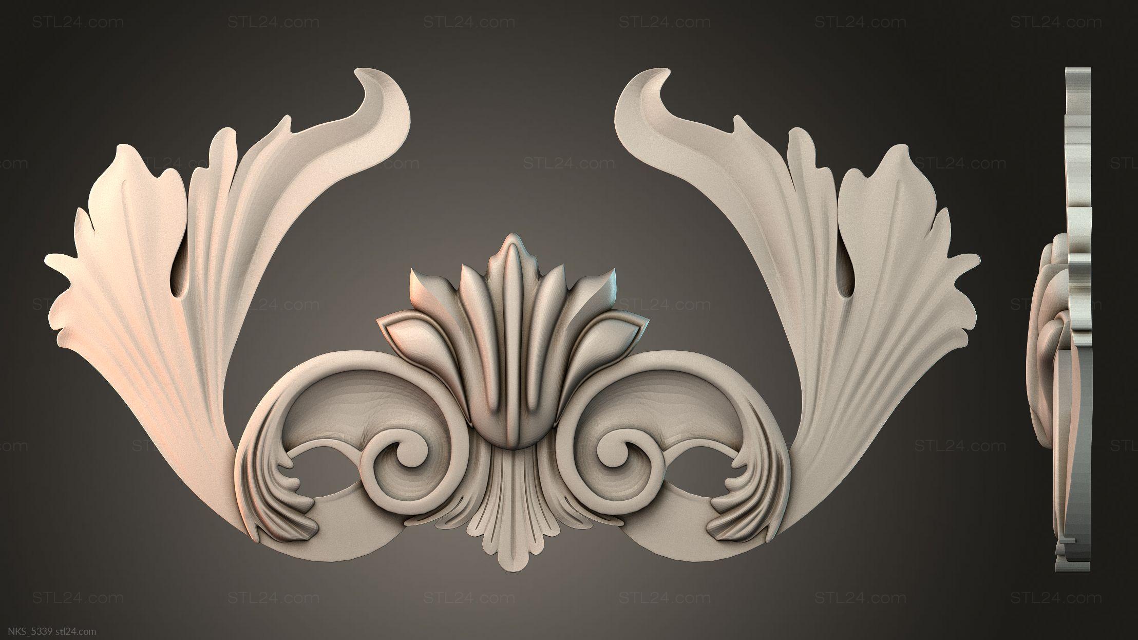There’s also a section with asymmetrical onlays. Perhaps the decor you need is presented there. See the page. Another section contains 3D models of central onlays. Read about all sections in one article: overview of 3D models of carved onlay elements.