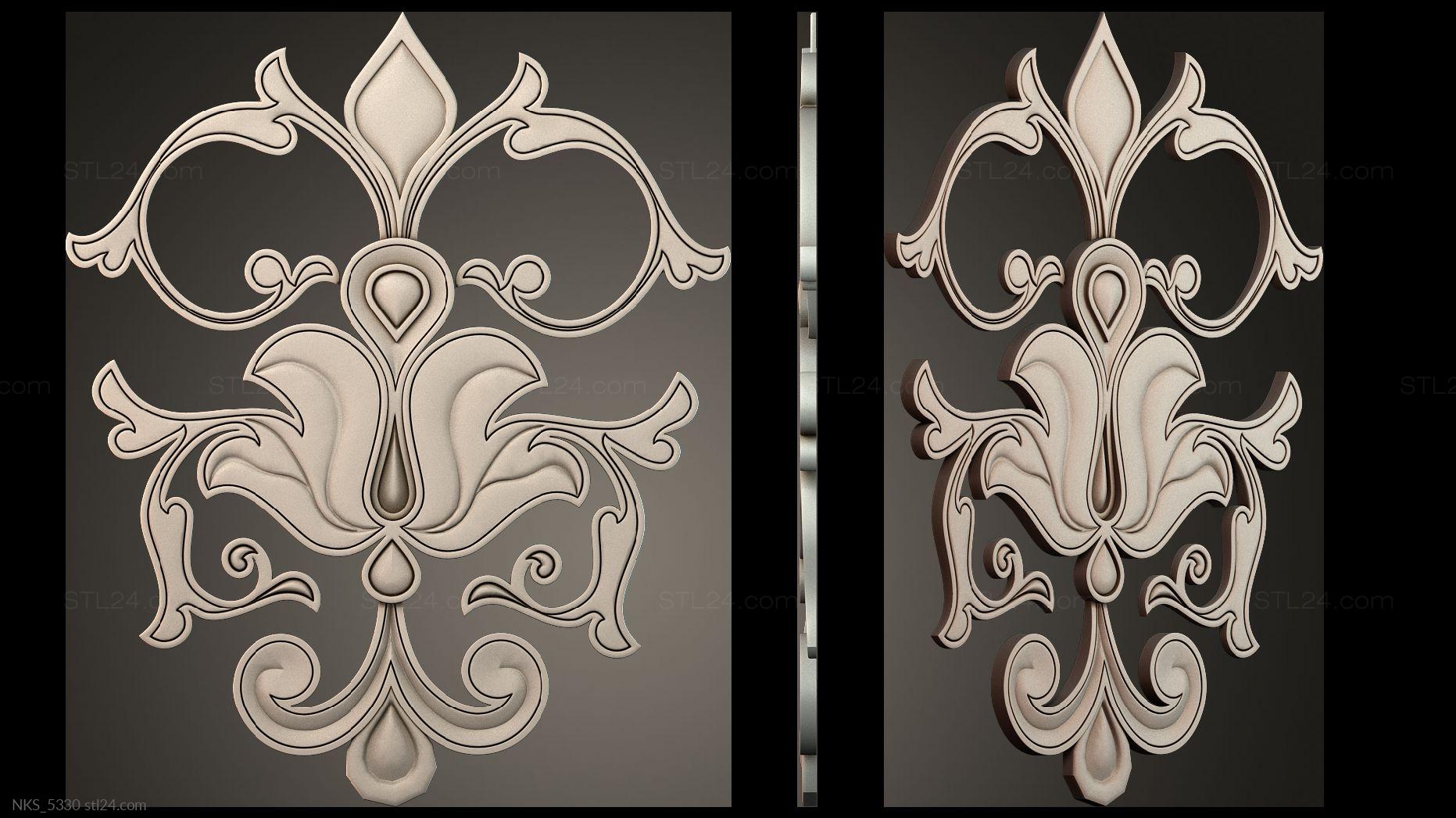 In this section you’ll find over 1000 different 3D models of decorative symmetrical onlays suitable for any kind of decor. Onlays are most often made to decorate furniture, doors, frames, etc. You can use a CNC machine to create onlays of any complexity and in any quantity based on our models.
