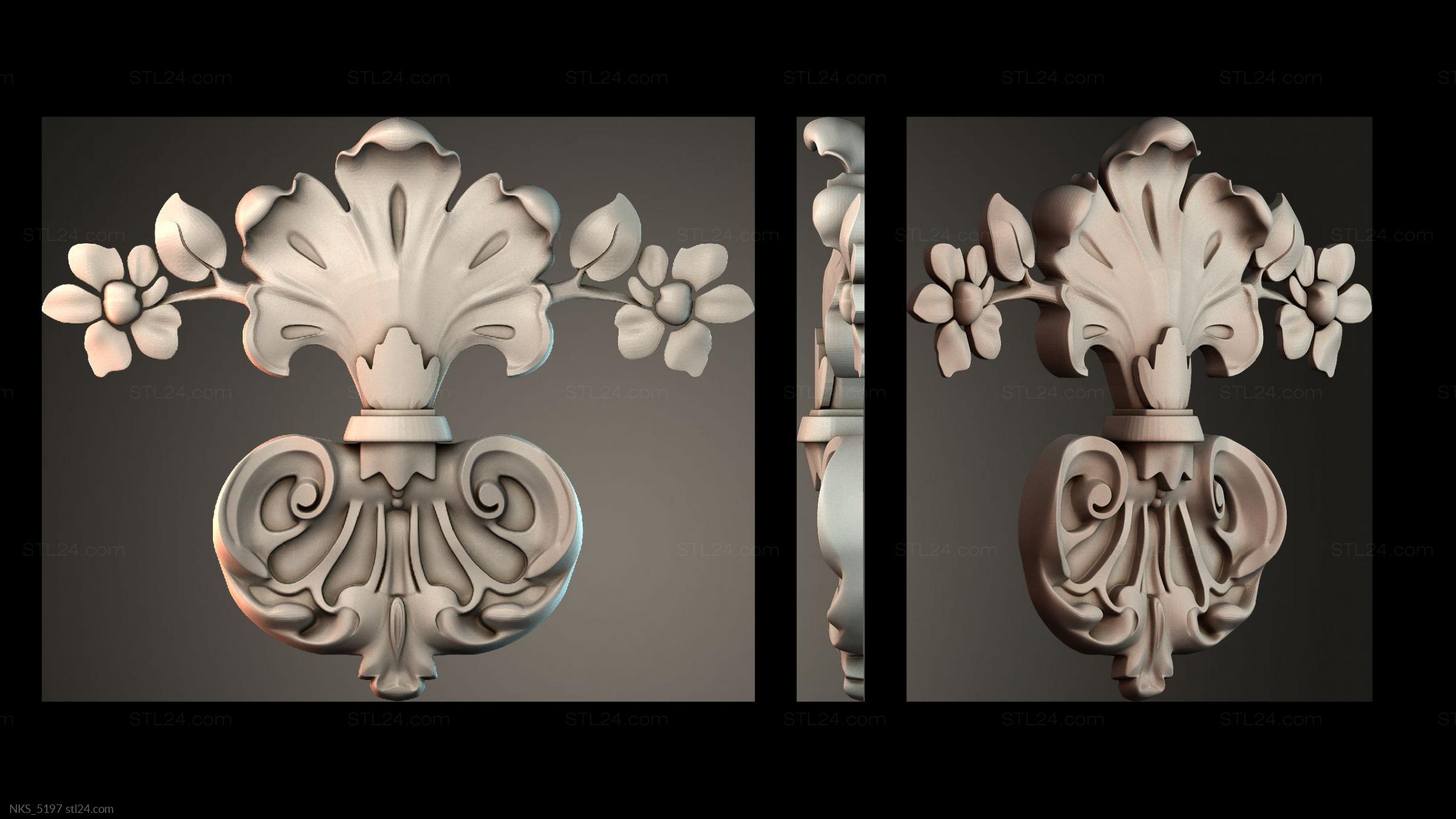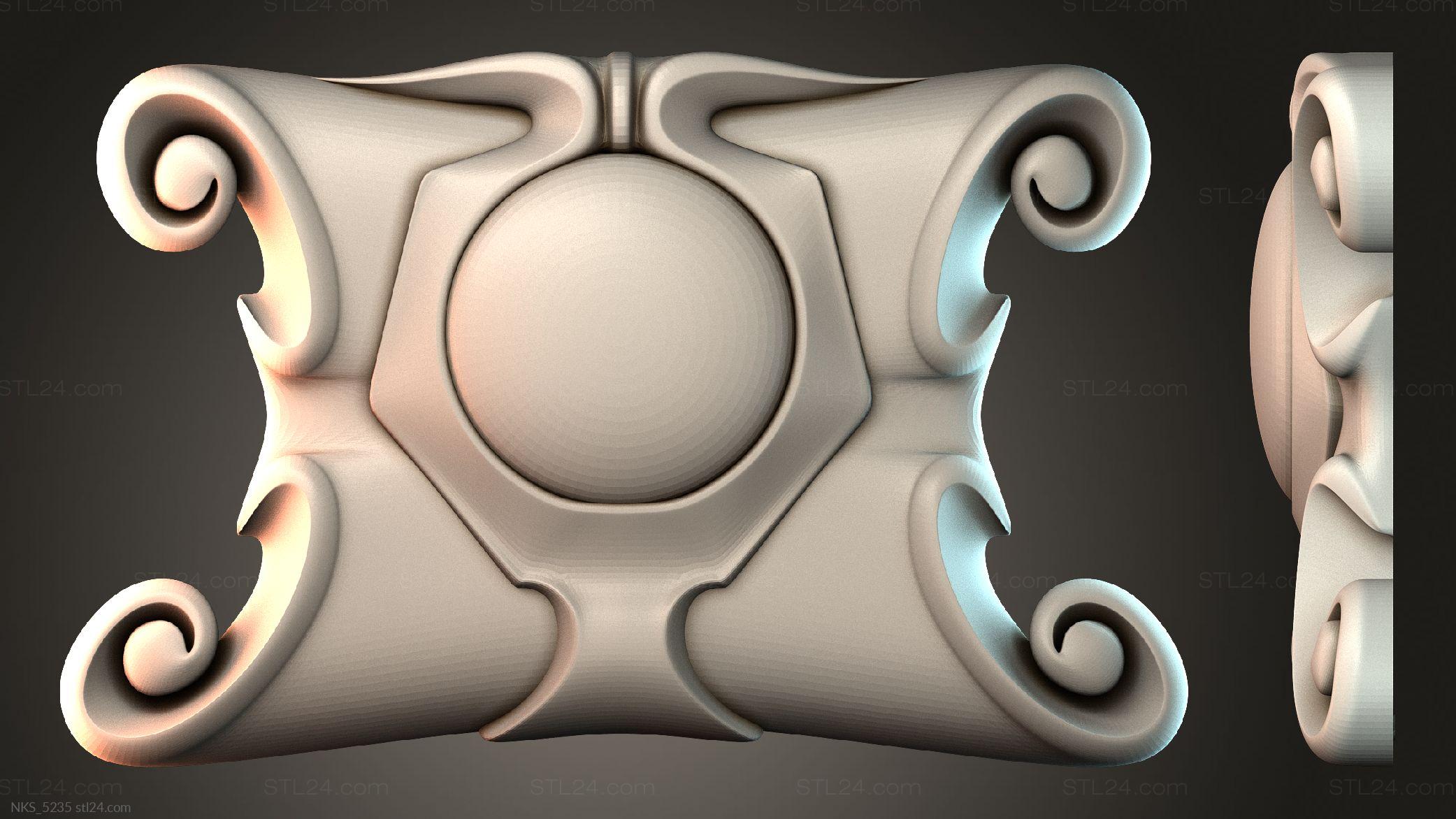 There’s also a section with asymmetrical onlays. Perhaps the decor you need is presented there. See the page. Another section contains 3D models of central onlays. Read about all sections in one article: overview of 3D models of carved onlay elements.