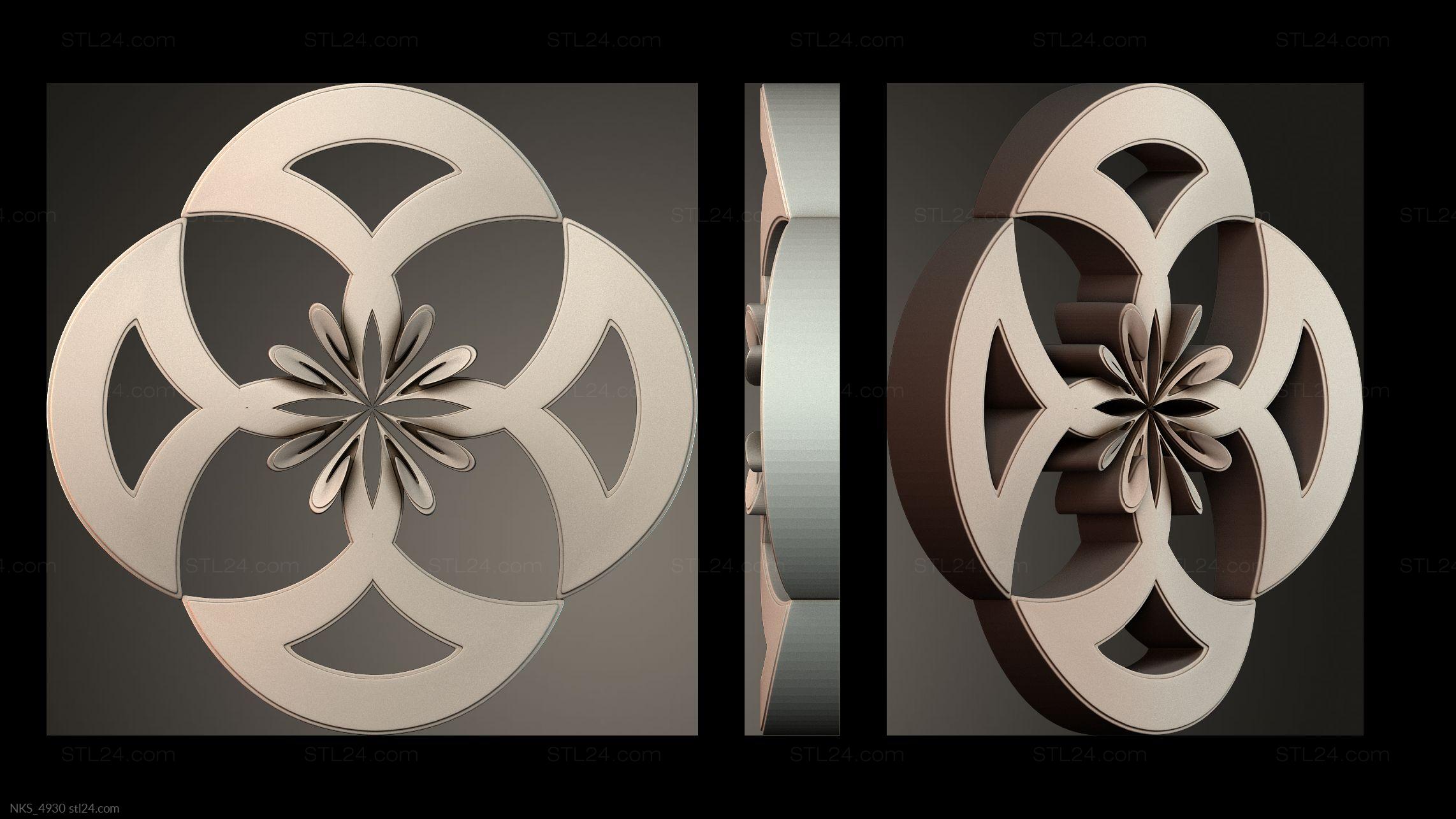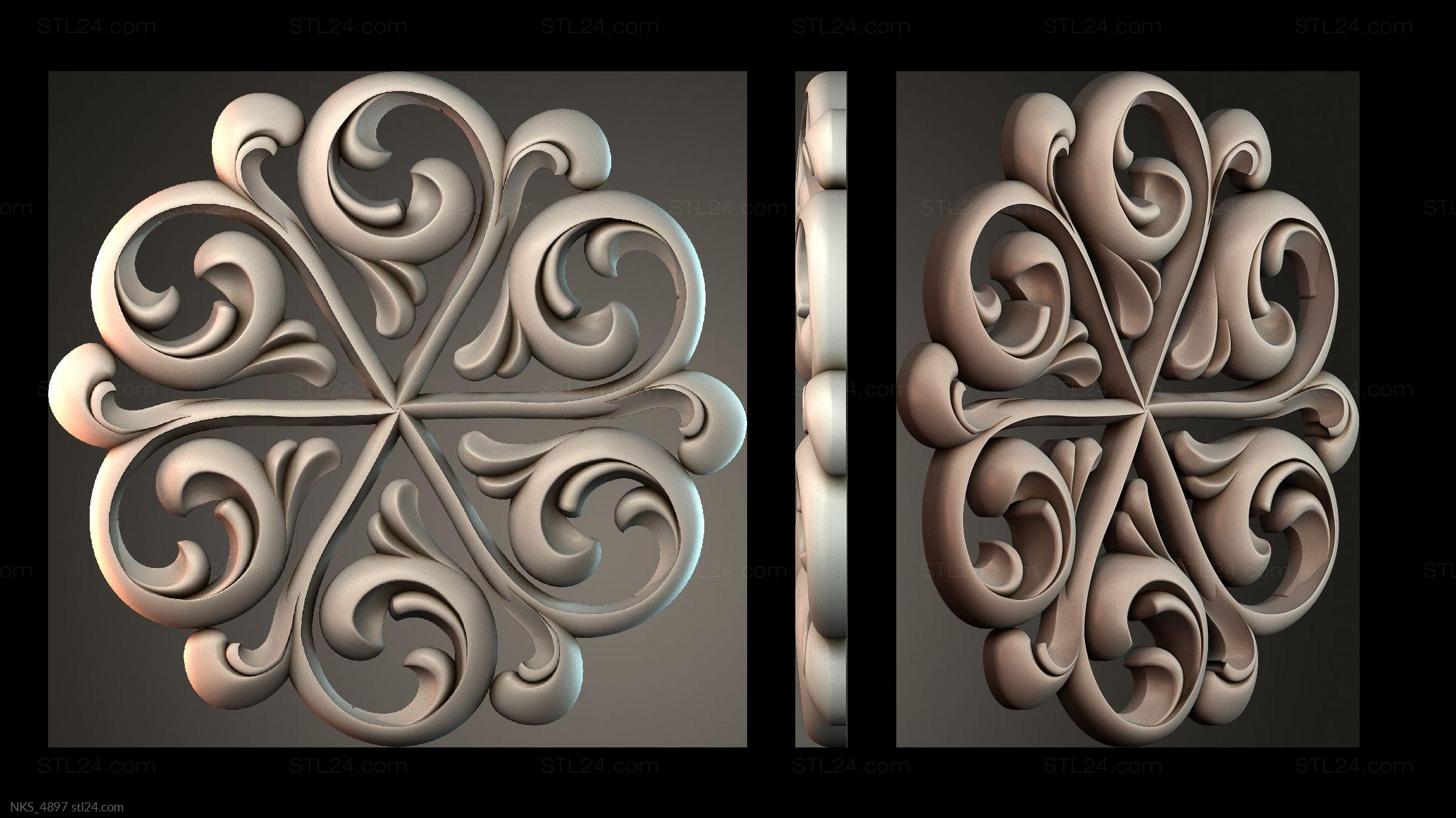 In this section you’ll find over 1000 different 3D models of decorative symmetrical onlays suitable for any kind of decor. Onlays are most often made to decorate furniture, doors, frames, etc. You can use a CNC machine to create onlays of any complexity and in any quantity based on our models.