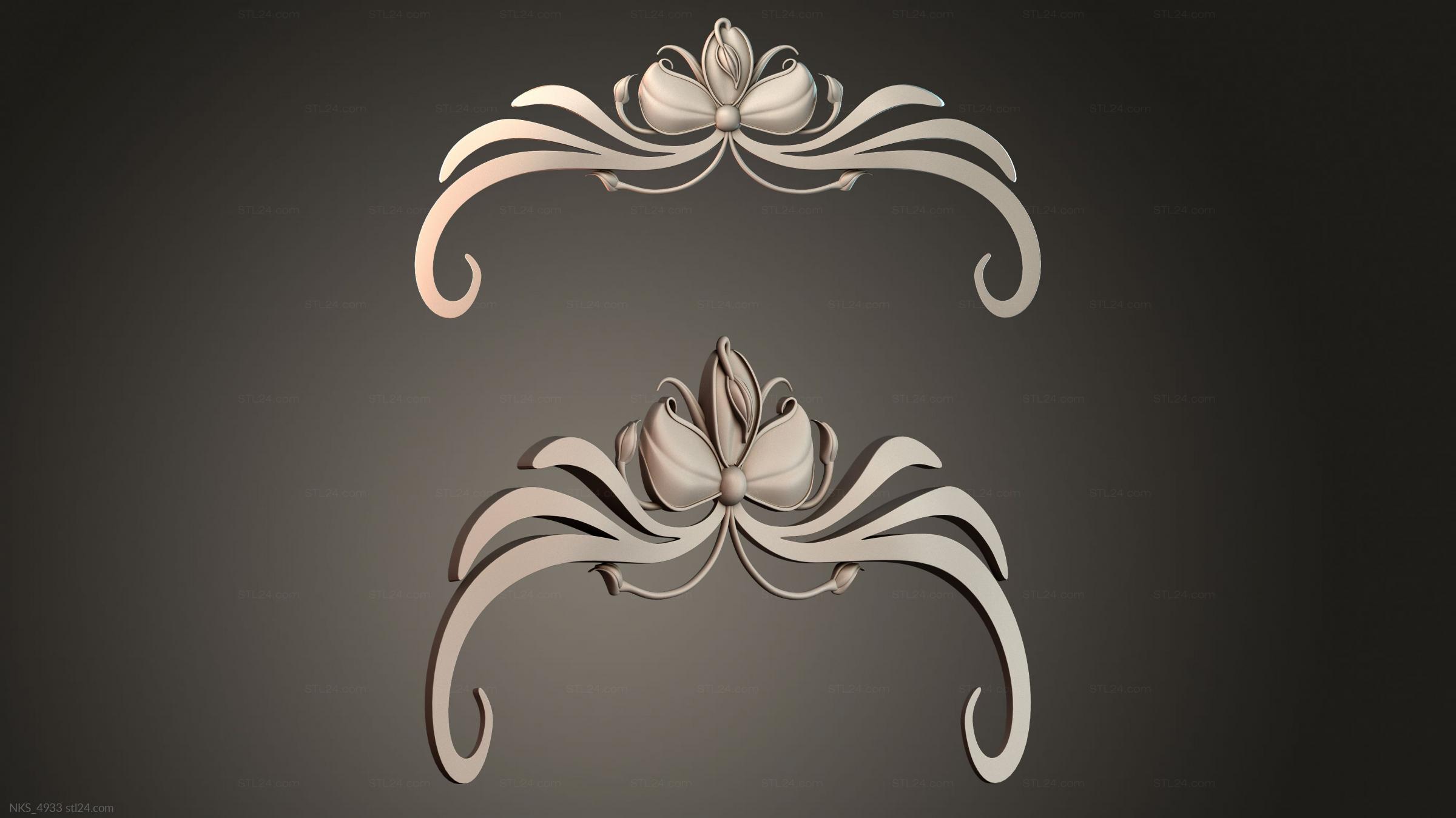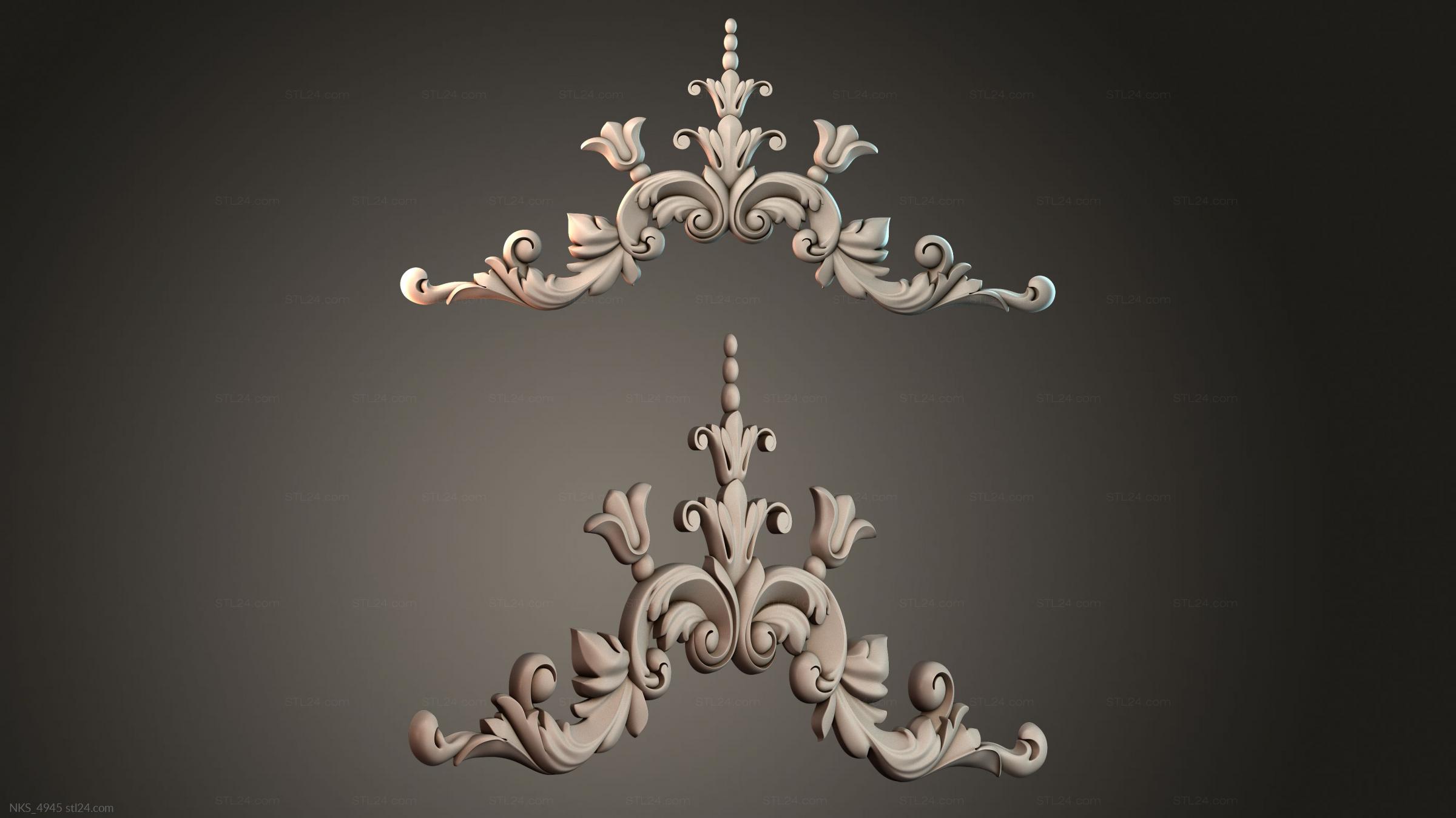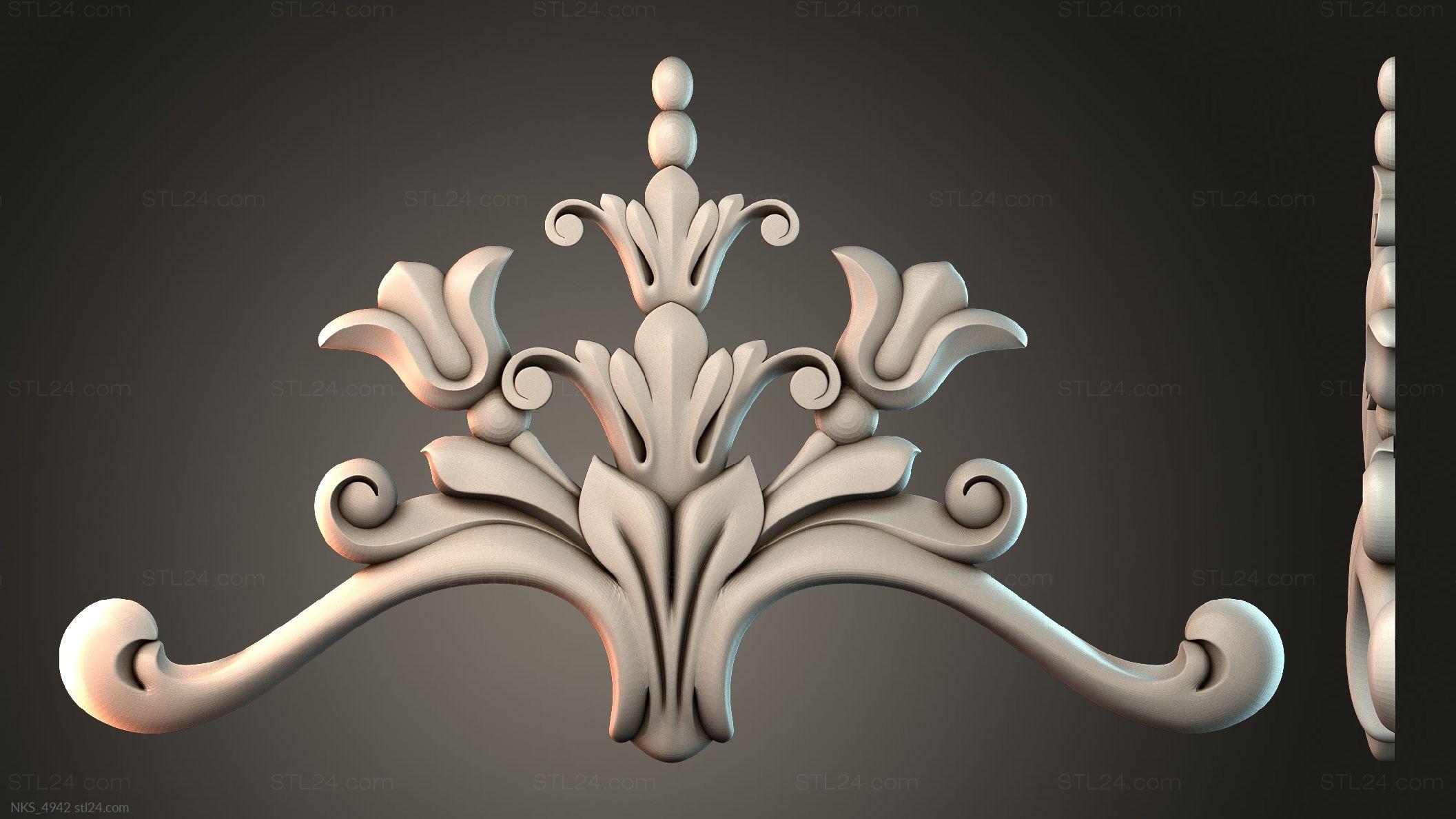 There’s also a section with asymmetrical onlays. Perhaps the decor you need is presented there. See the page. Another section contains 3D models of central onlays. Read about all sections in one article: overview of 3D models of carved onlay elements.