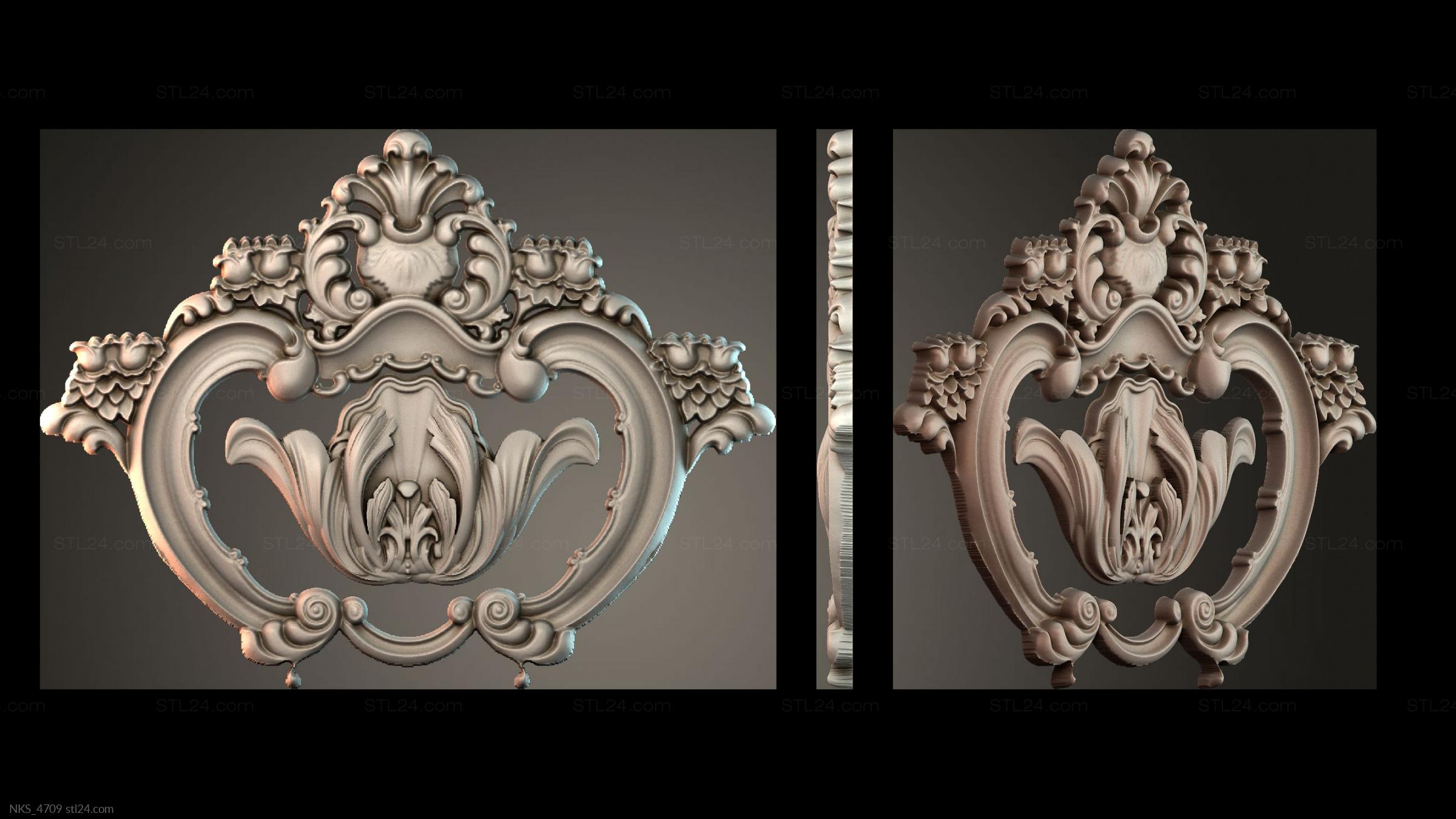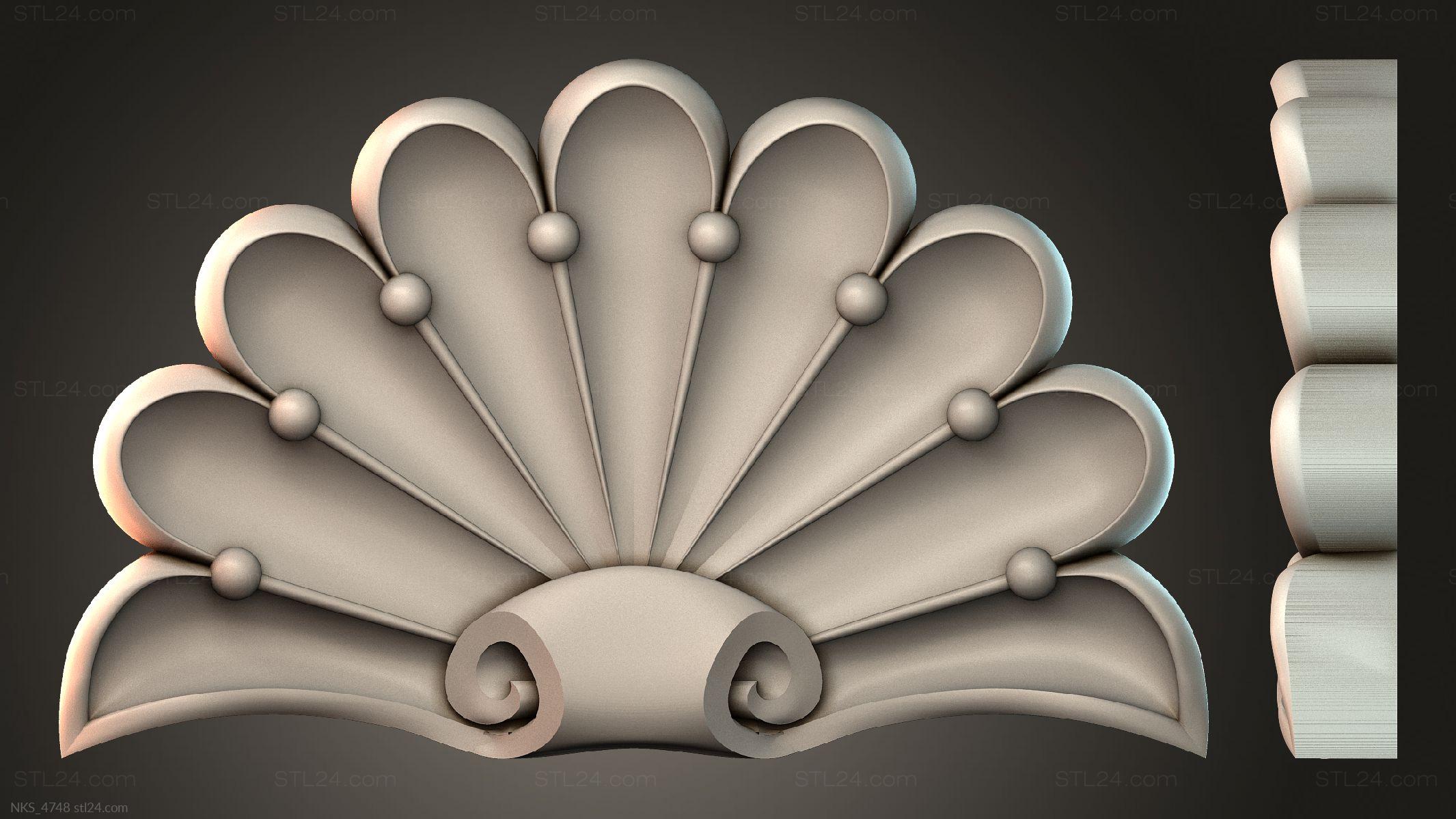 There’s also a section with asymmetrical onlays. Perhaps the decor you need is presented there. See the page. Another section contains 3D models of central onlays. Read about all sections in one article: overview of 3D models of carved onlay elements.