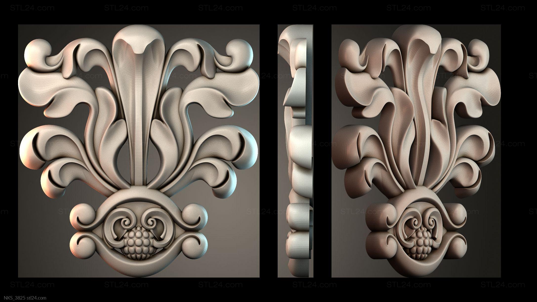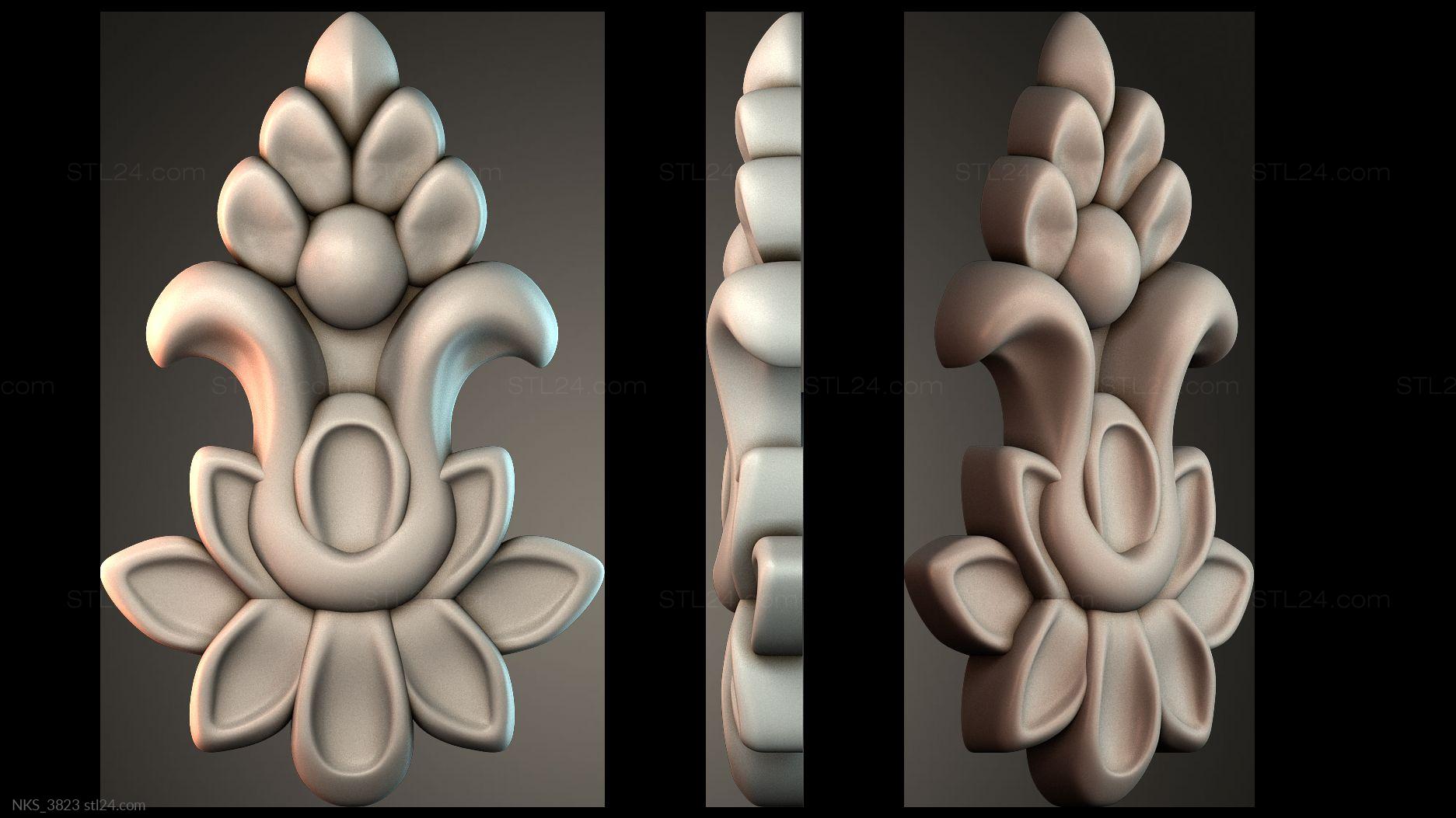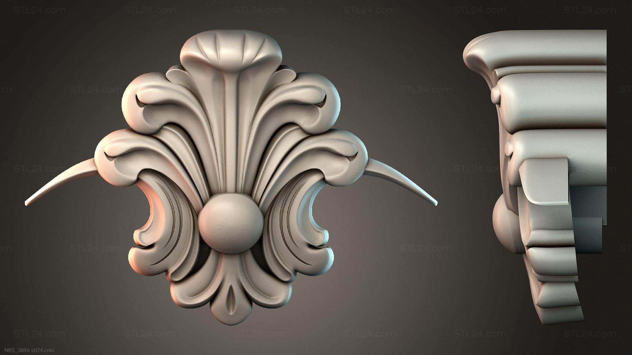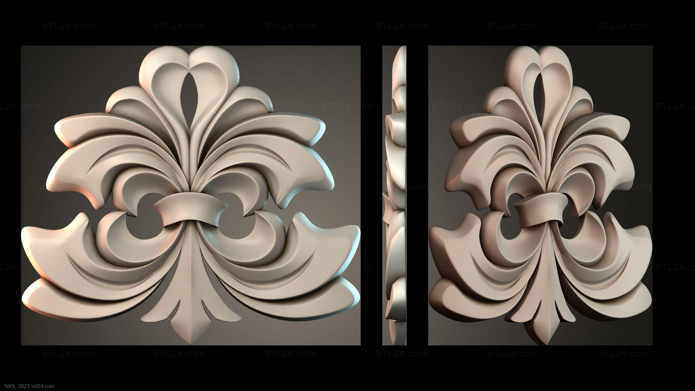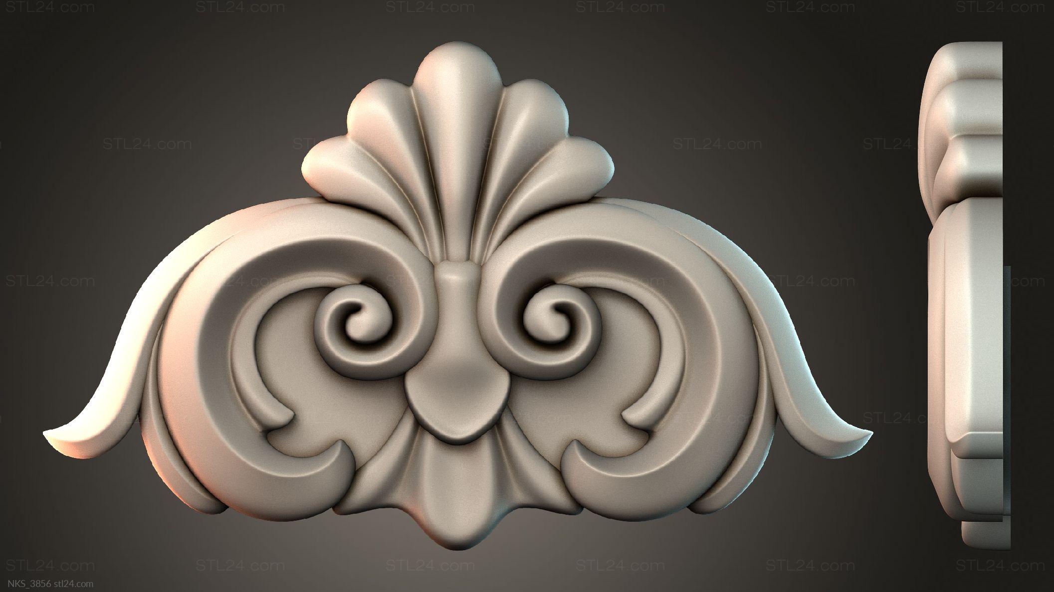 There’s also a section with asymmetrical onlays. Perhaps the decor you need is presented there. See the page. Another section contains 3D models of central onlays. Read about all sections in one article: overview of 3D models of carved onlay elements.