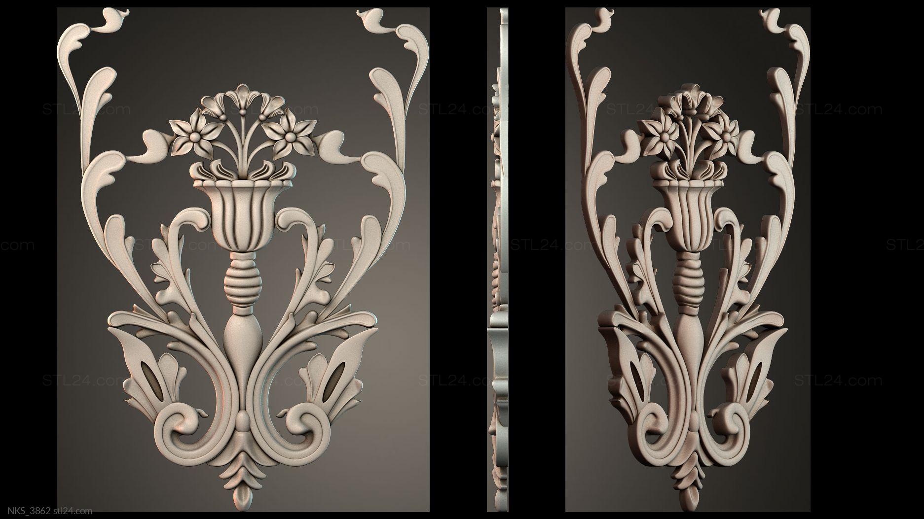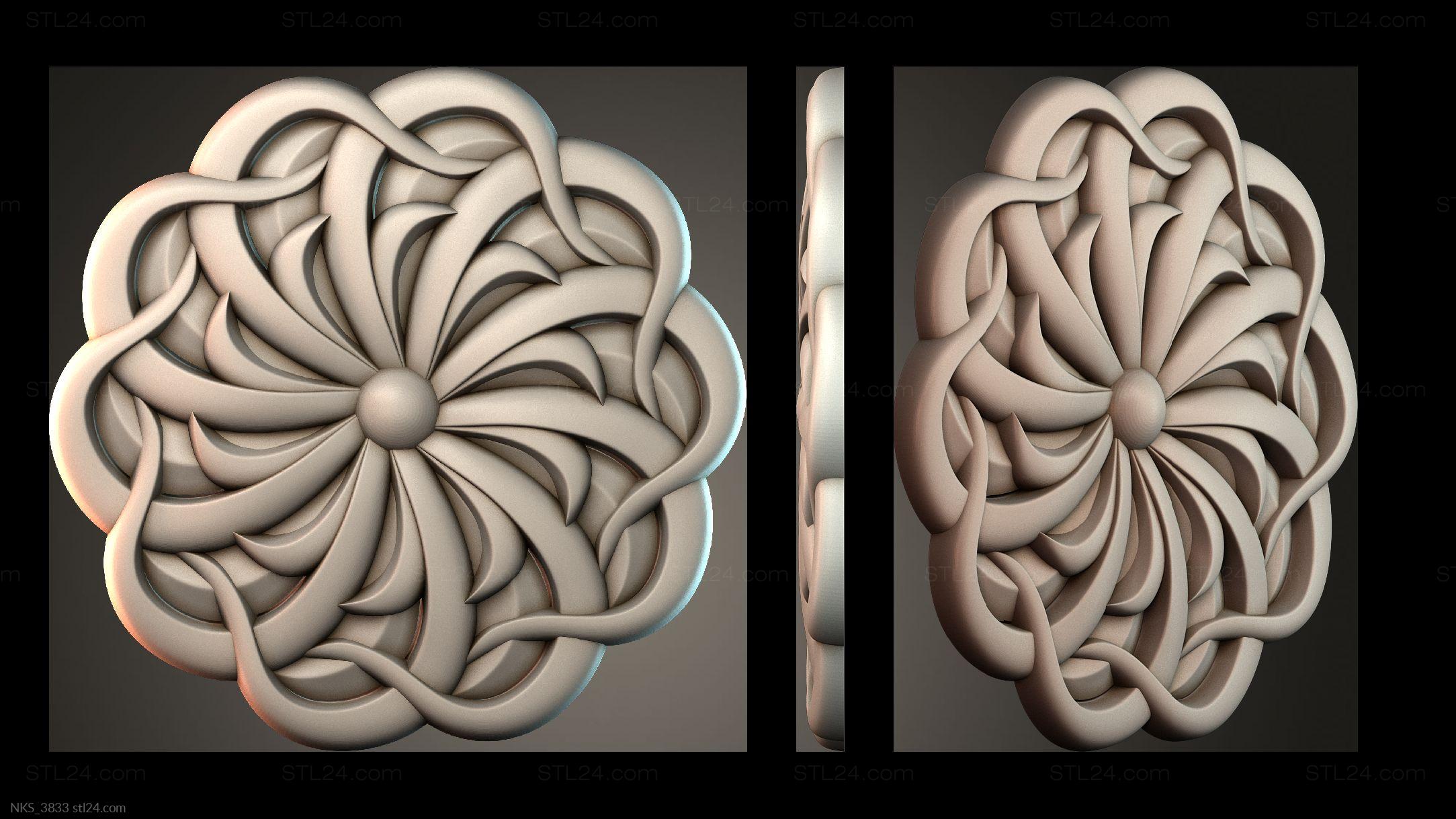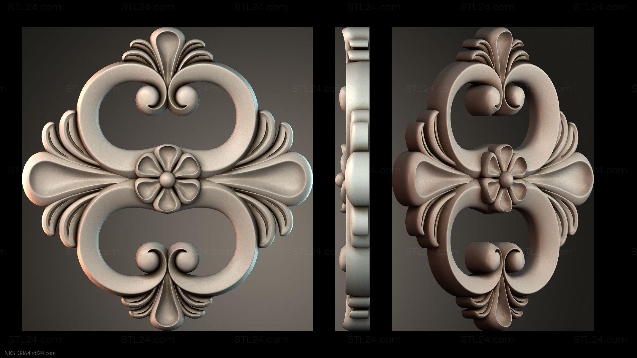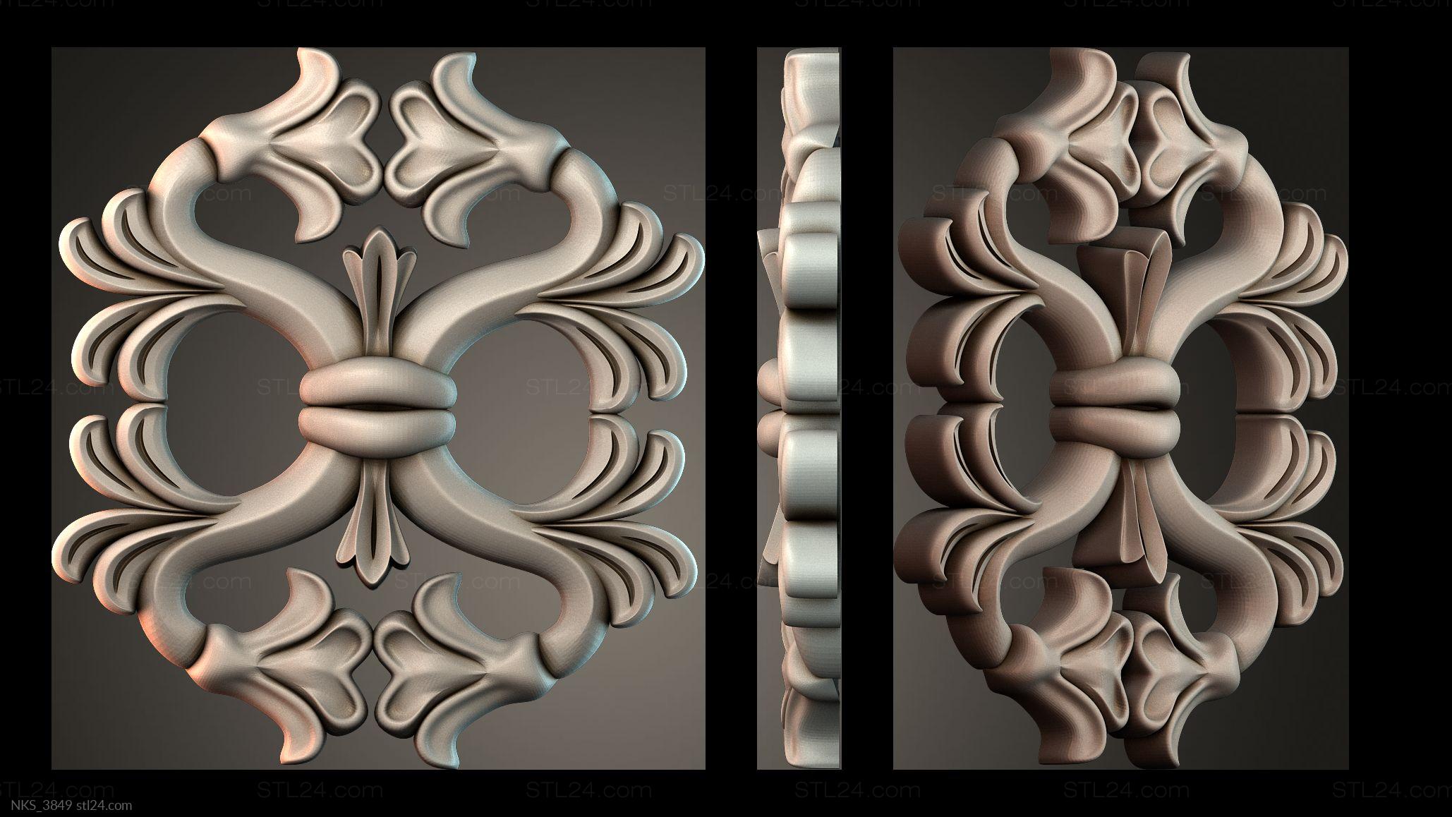 In this section you’ll find over 1000 different 3D models of decorative symmetrical onlays suitable for any kind of decor. Onlays are most often made to decorate furniture, doors, frames, etc. You can use a CNC machine to create onlays of any complexity and in any quantity based on our models.