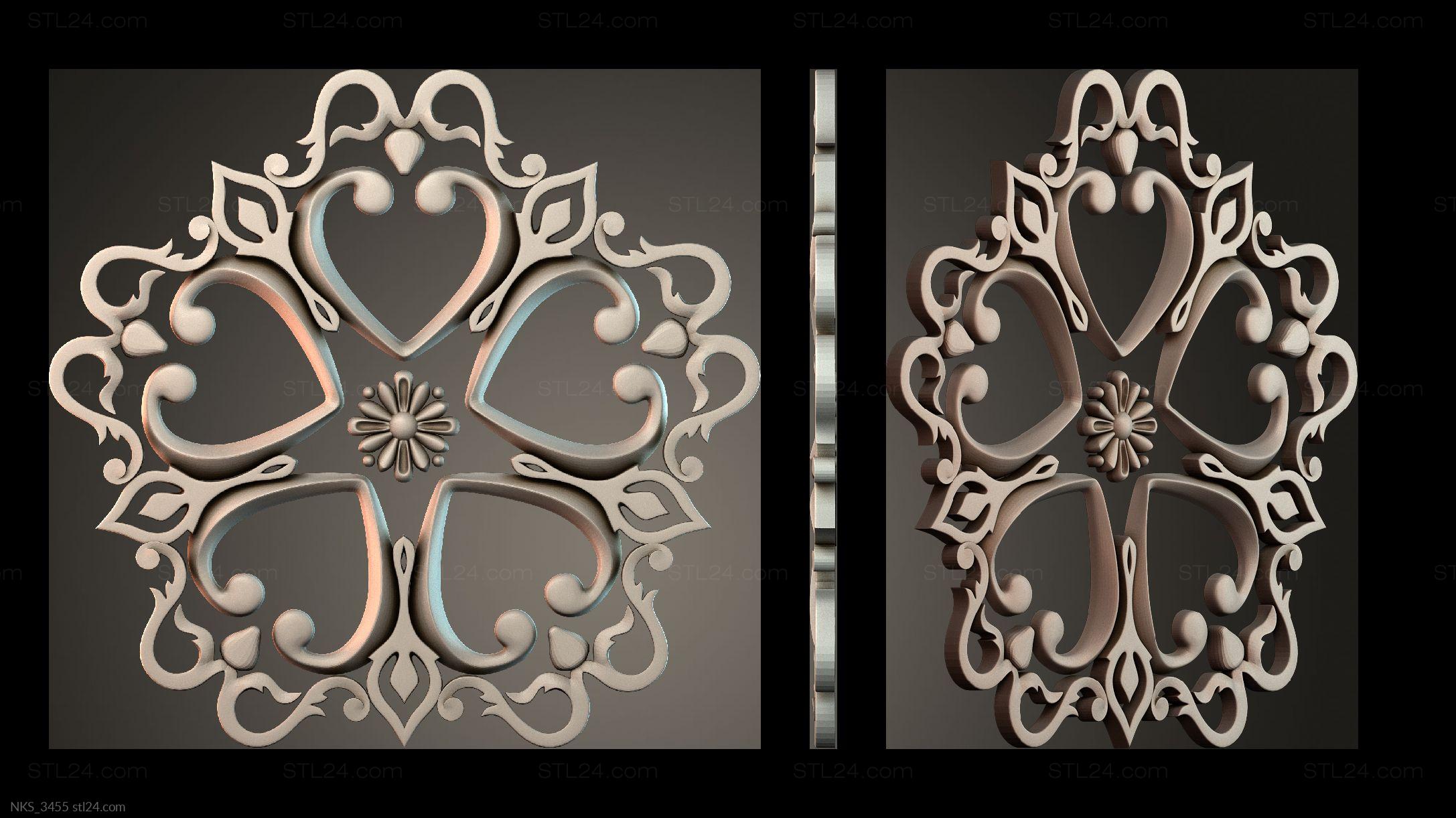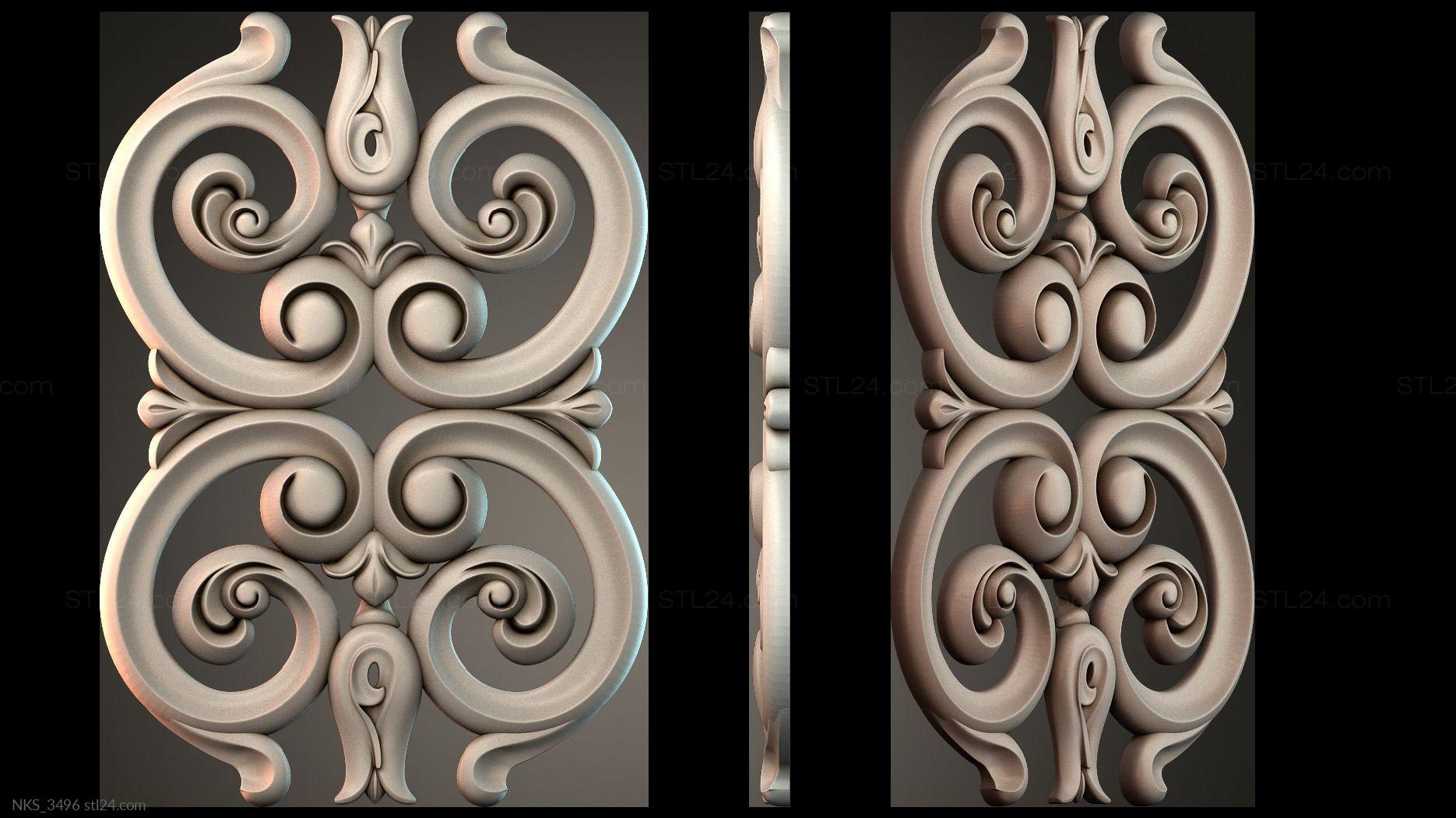 In this section you’ll find over 1000 different 3D models of decorative symmetrical onlays suitable for any kind of decor. Onlays are most often made to decorate furniture, doors, frames, etc. You can use a CNC machine to create onlays of any complexity and in any quantity based on our models.