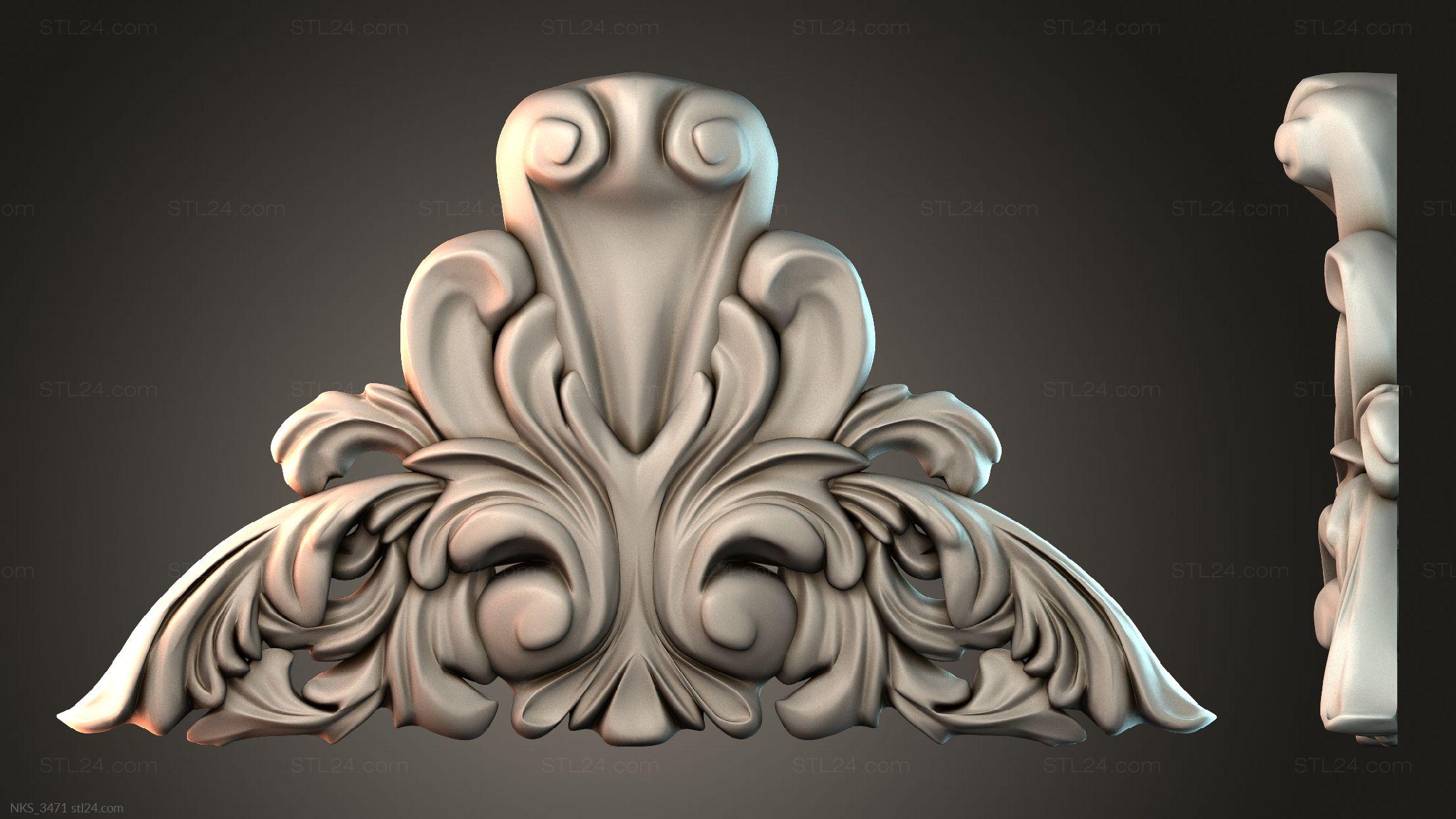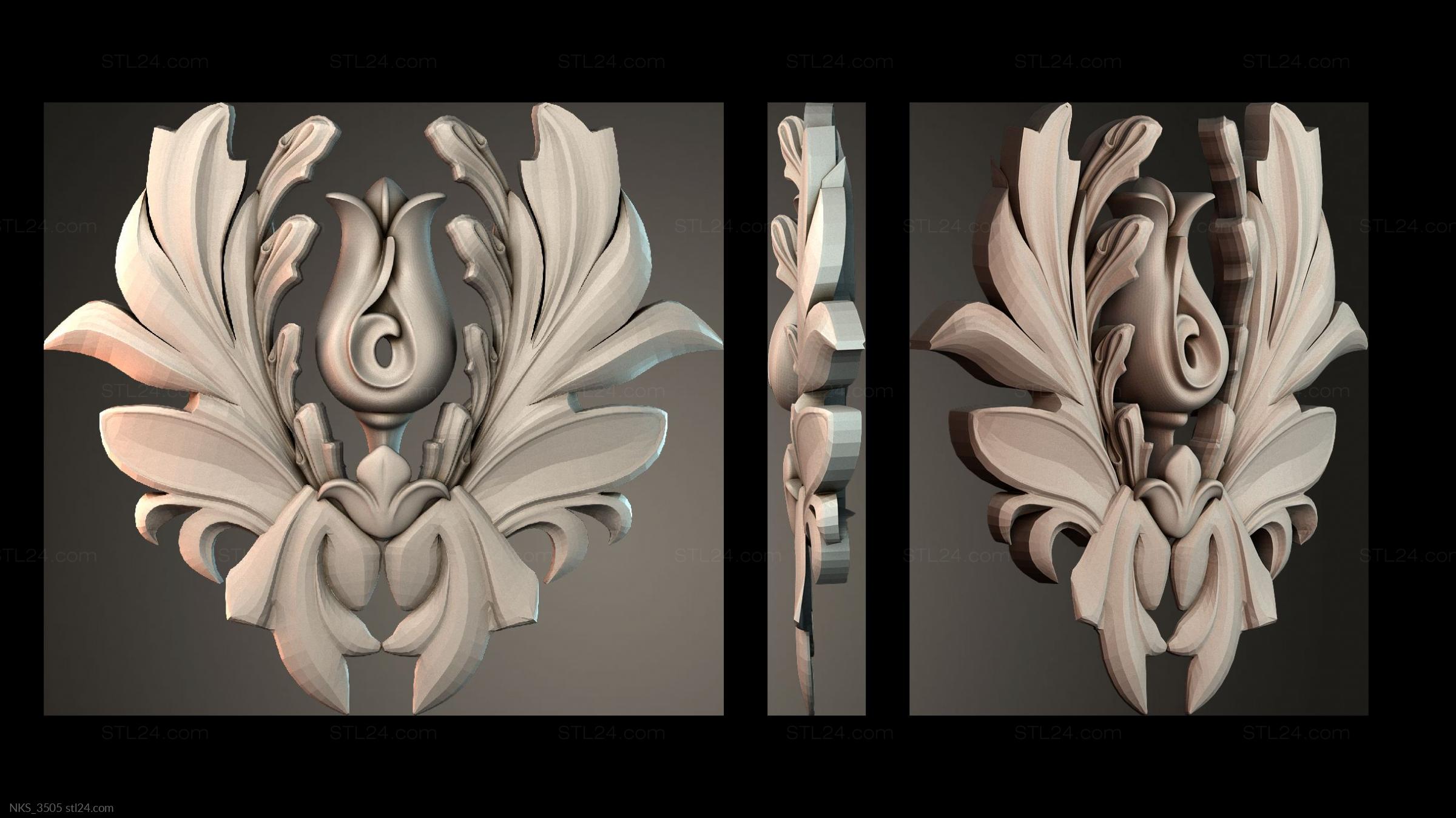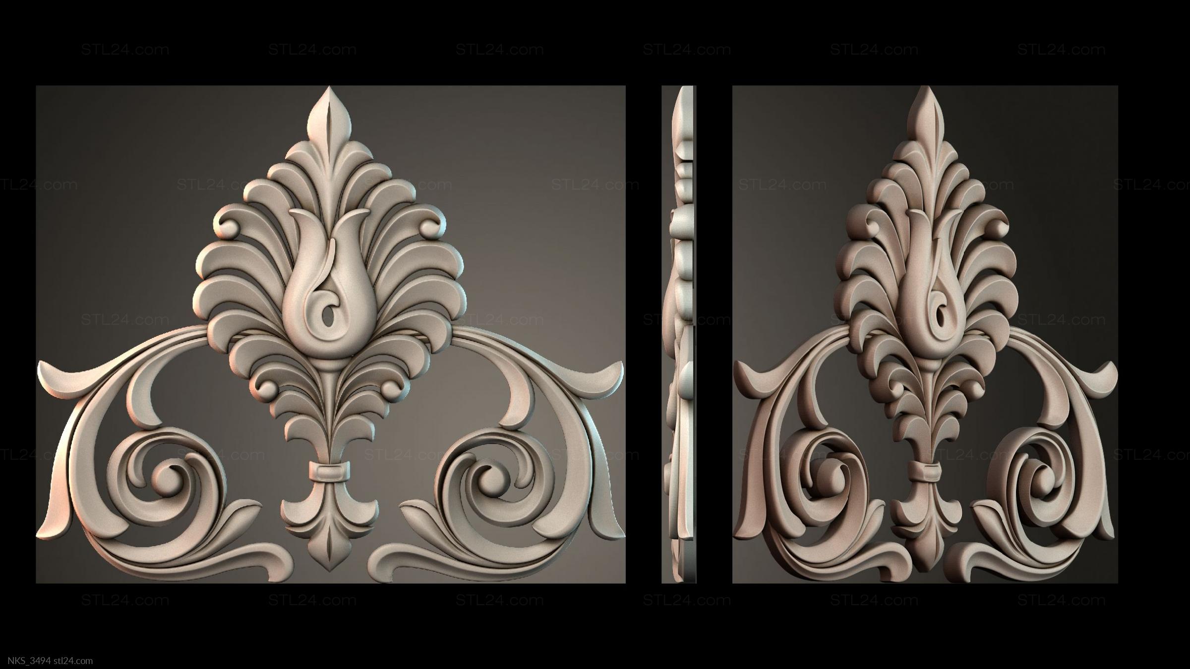 There’s also a section with asymmetrical onlays. Perhaps the decor you need is presented there. See the page. Another section contains 3D models of central onlays. Read about all sections in one article: overview of 3D models of carved onlay elements.