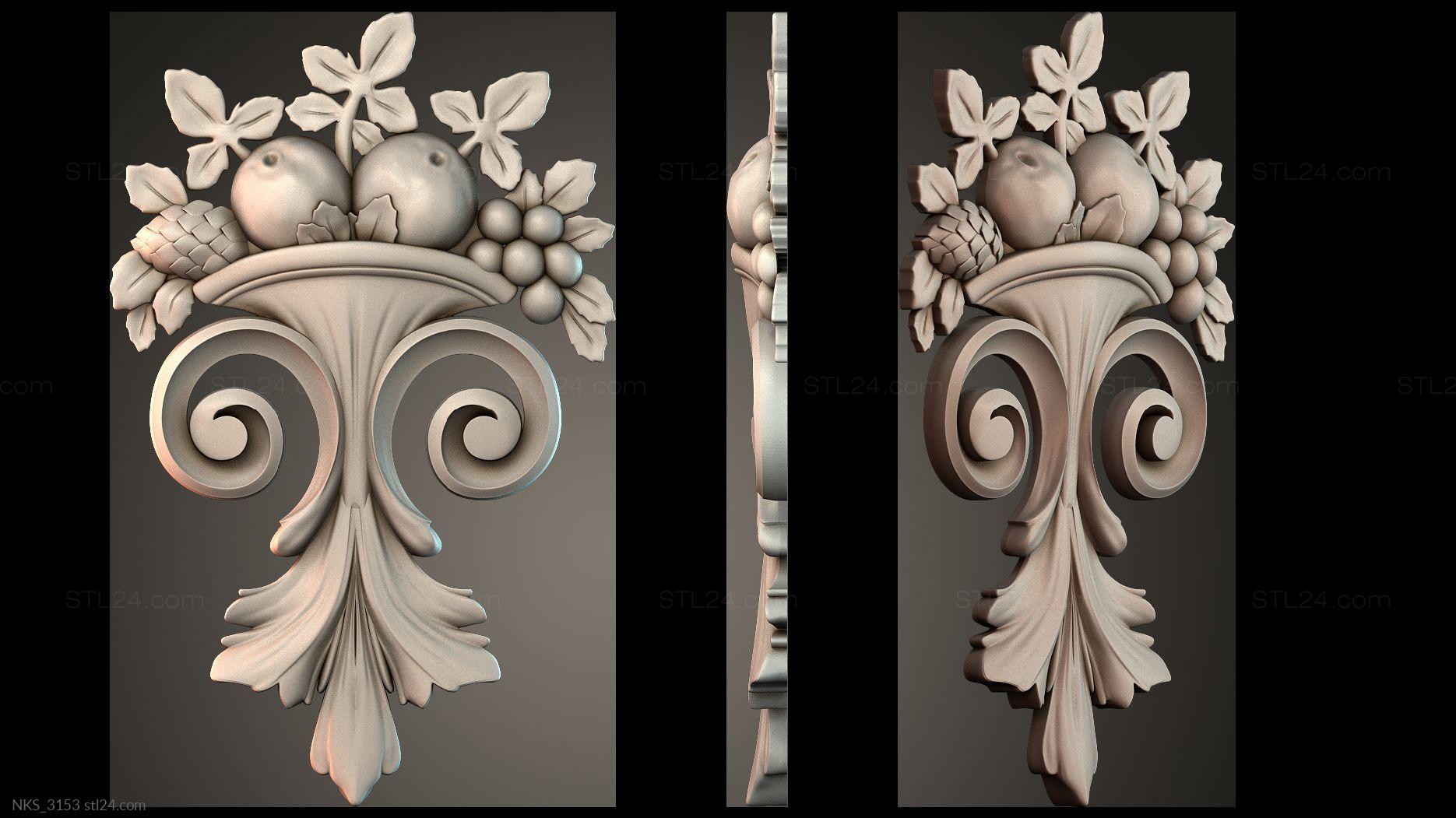There’s also a section with asymmetrical onlays. Perhaps the decor you need is presented there. See the page. Another section contains 3D models of central onlays. Read about all sections in one article: overview of 3D models of carved onlay elements.