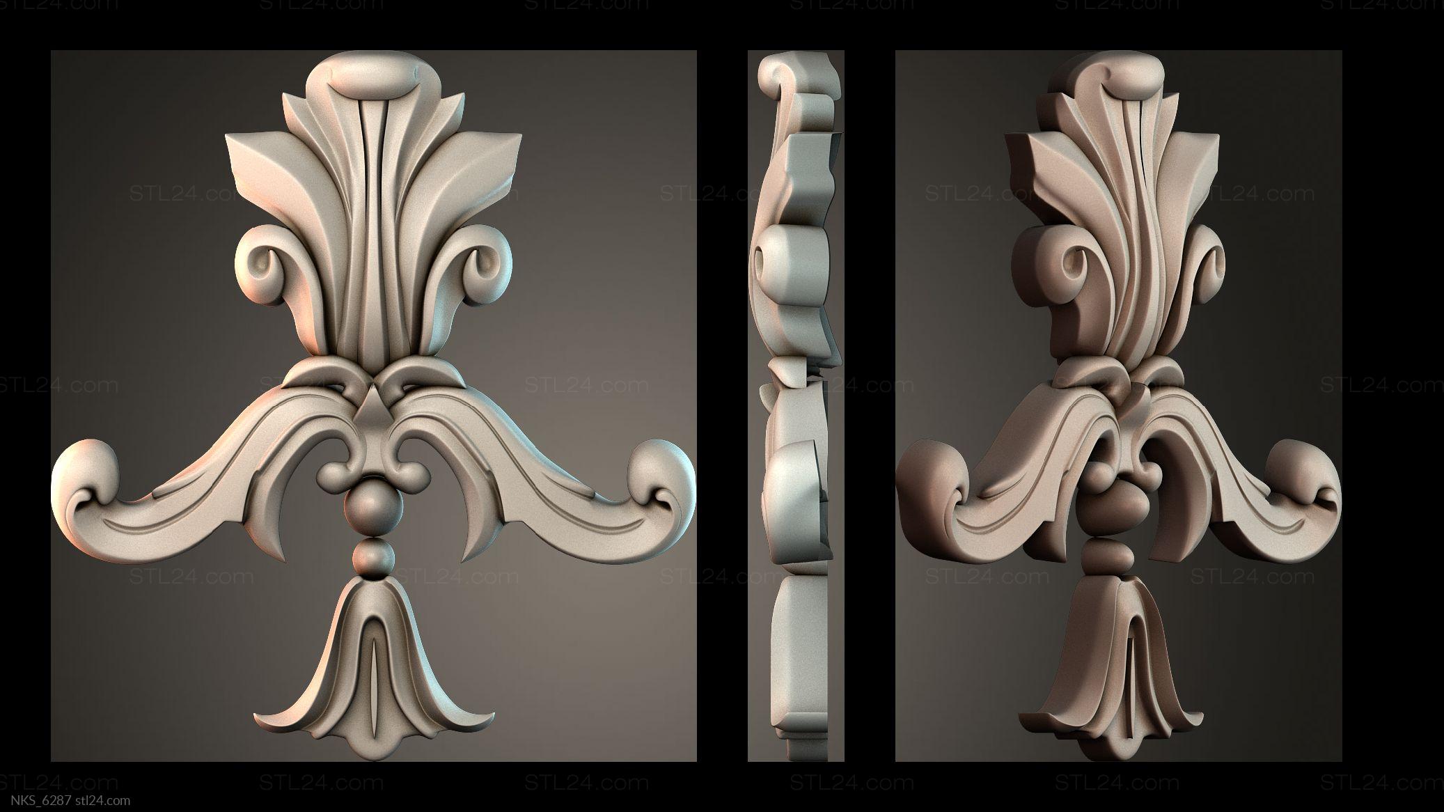 There’s also a section with asymmetrical onlays. Perhaps the decor you need is presented there. See the page. Another section contains 3D models of central onlays. Read about all sections in one article: overview of 3D models of carved onlay elements.